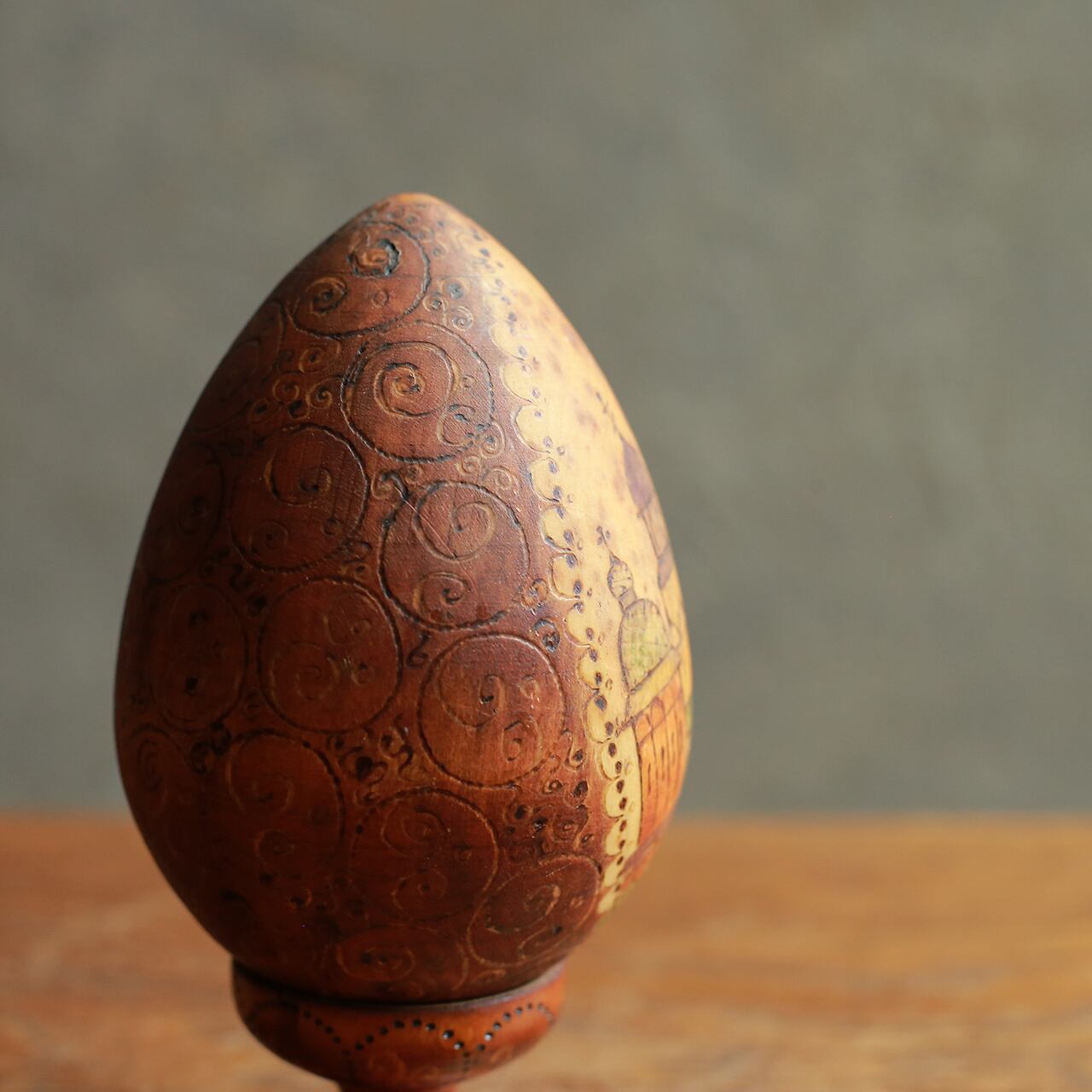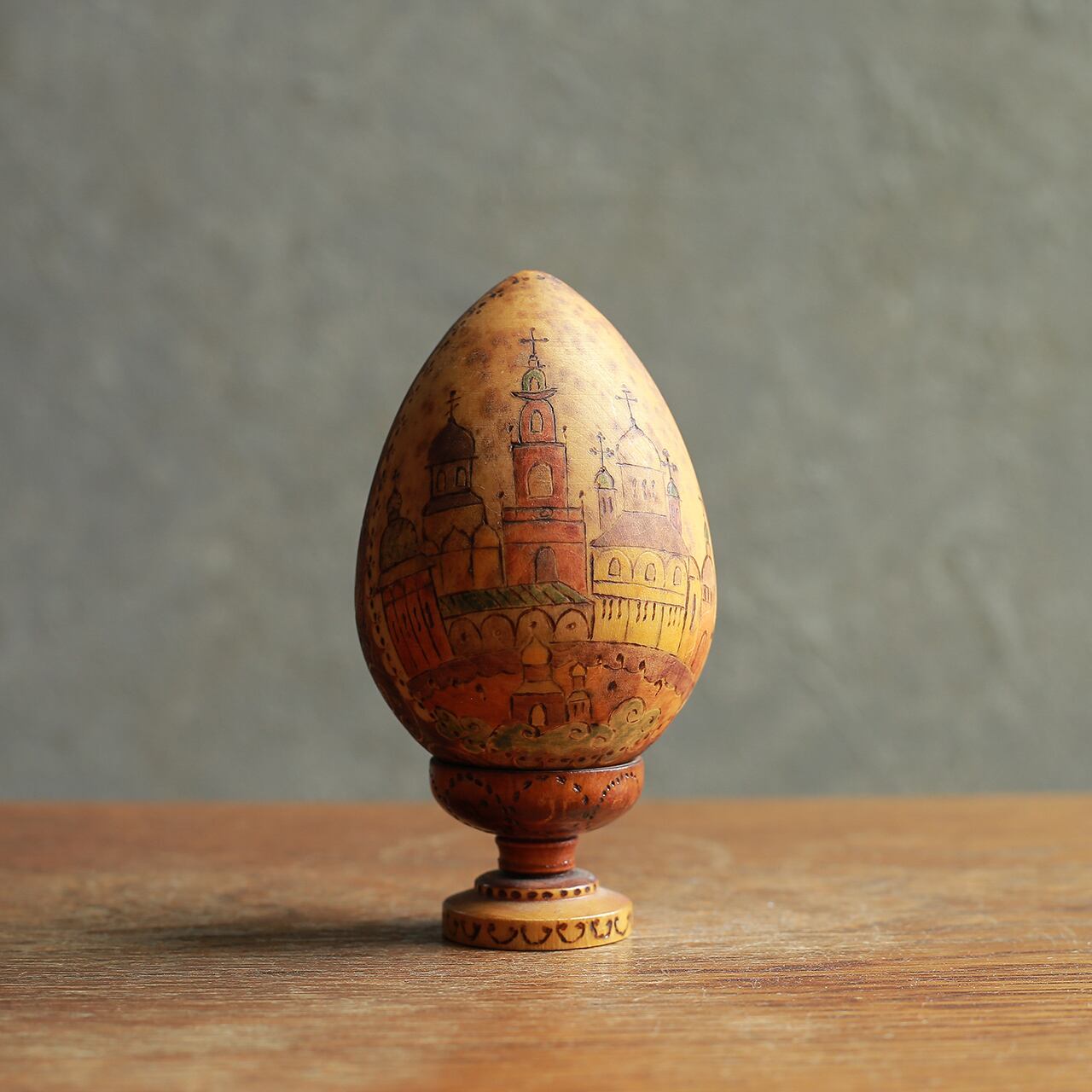 ロシアの街が描かれた、卵型のオブジェ