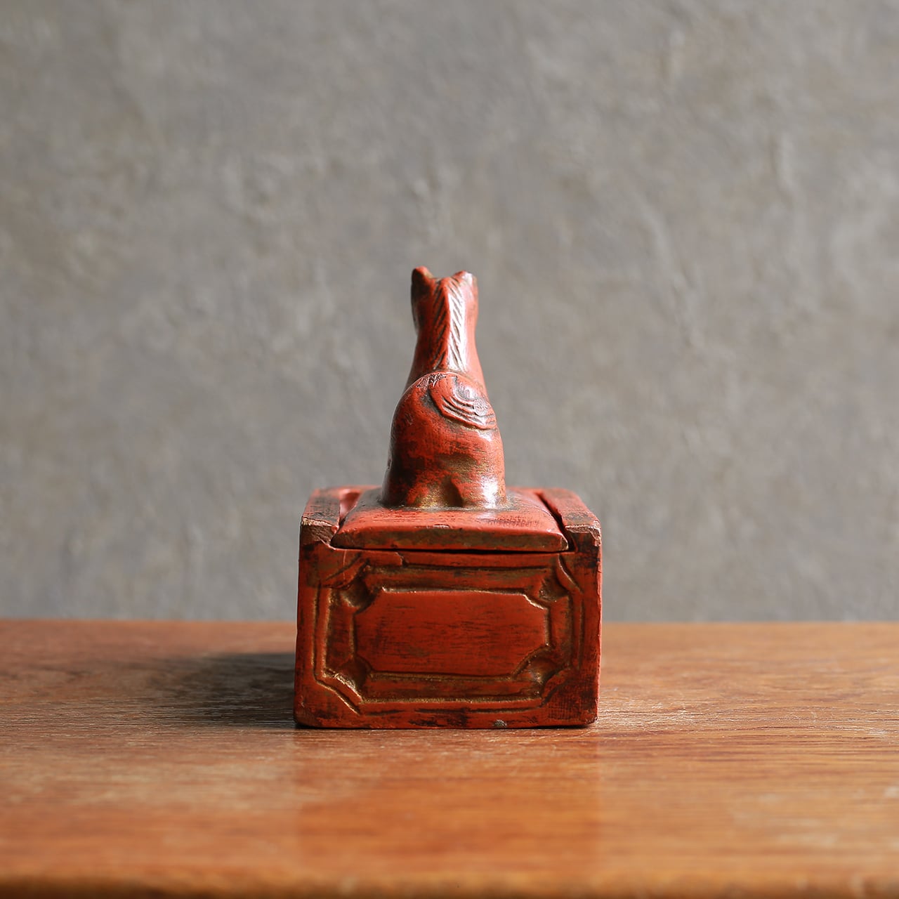 朱色が鮮やかな、味わい深い馬の小物入れ