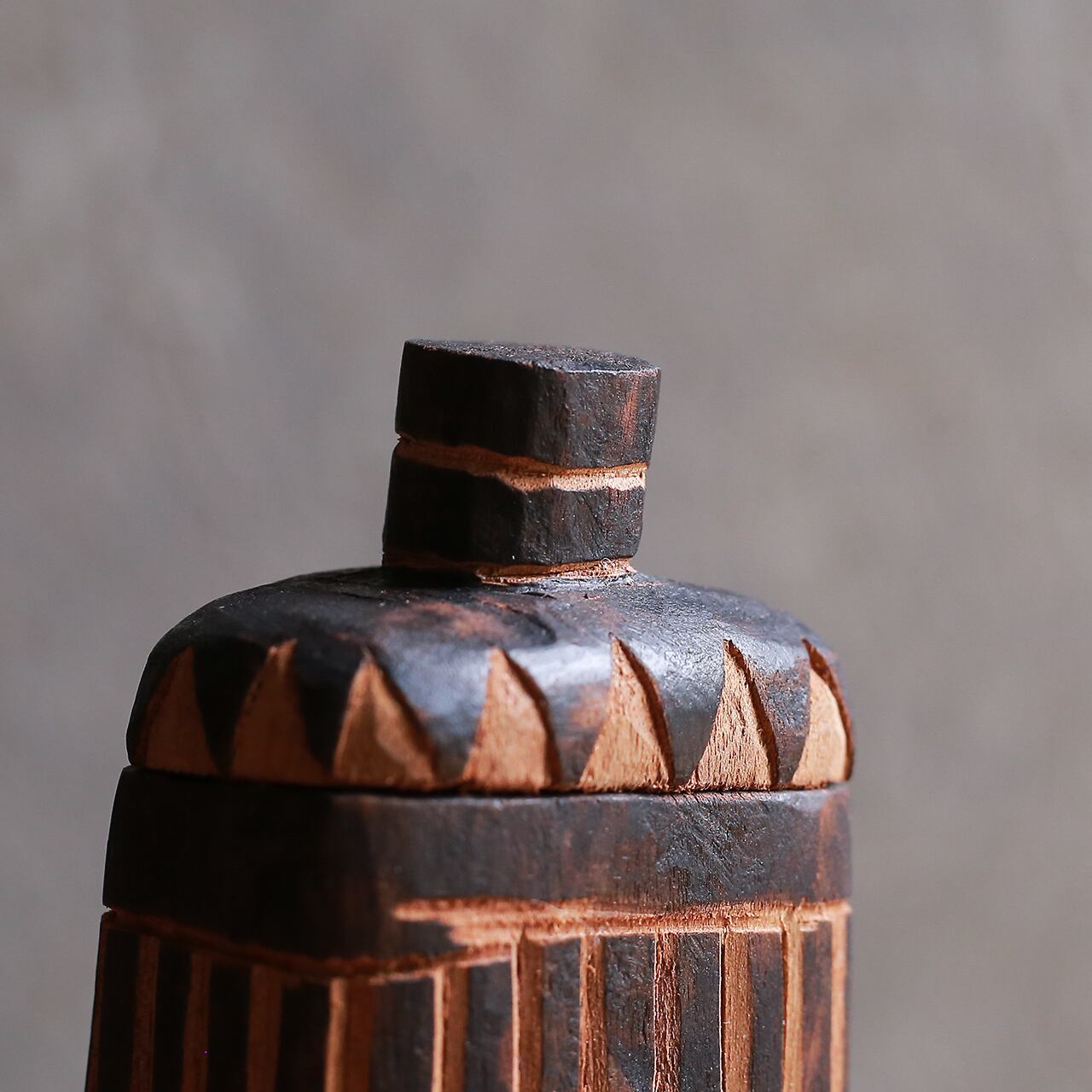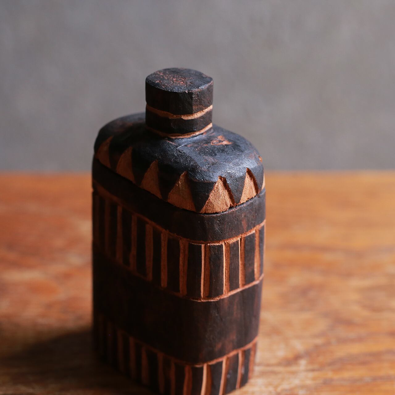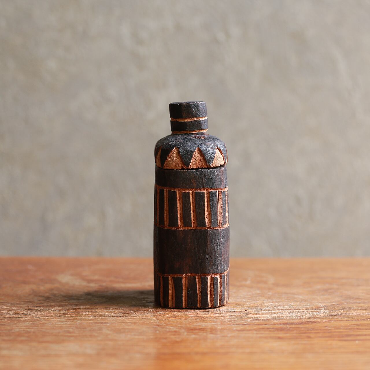 プリミティブな模様が素敵な、木のボトル