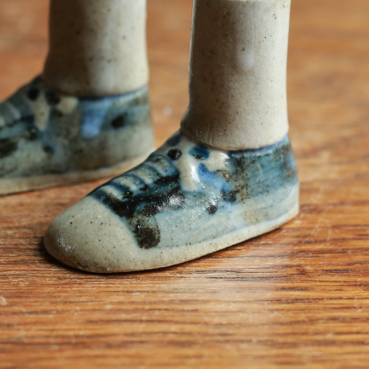 ちょこんとかわいらしい、陶器の靴