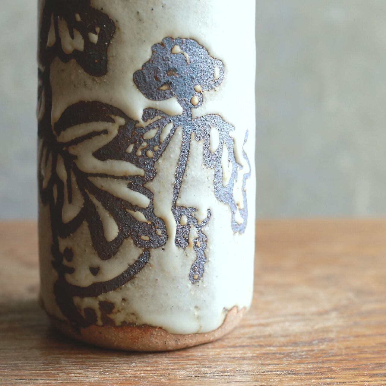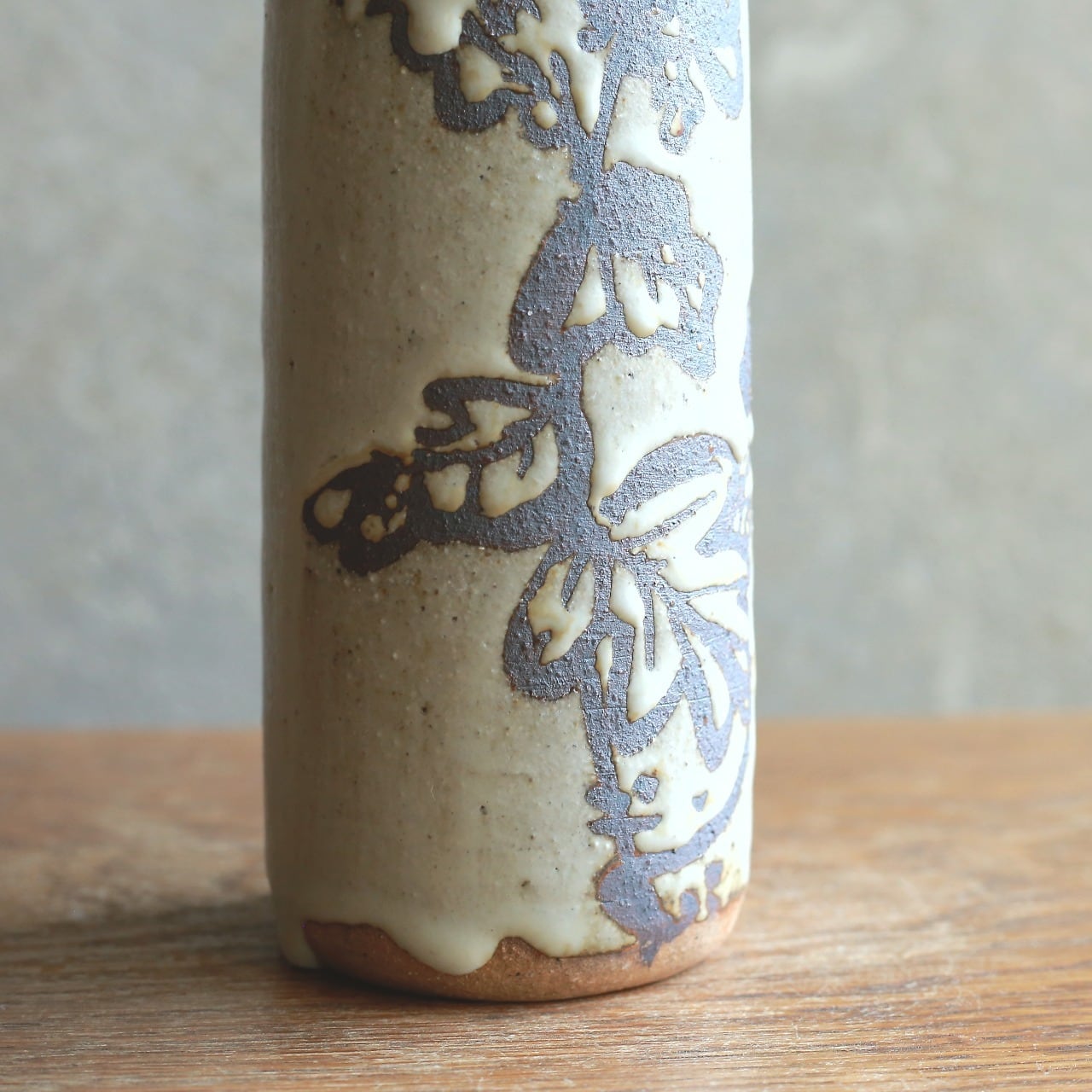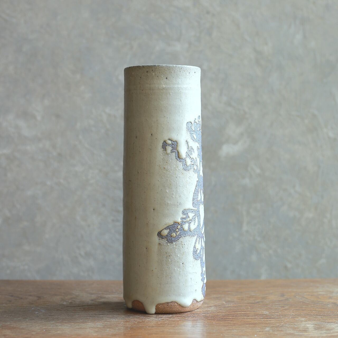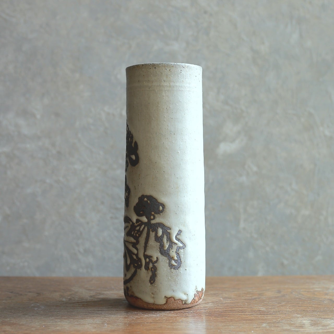 【キーワード】 花瓶 陶器 花器 筒型 インテリア オブジェ 焼き物 民藝 モダン 和モダン 草花文 手仕事 枝物 投げ入れ 壺 生け花 古民家 丁寧な暮らし