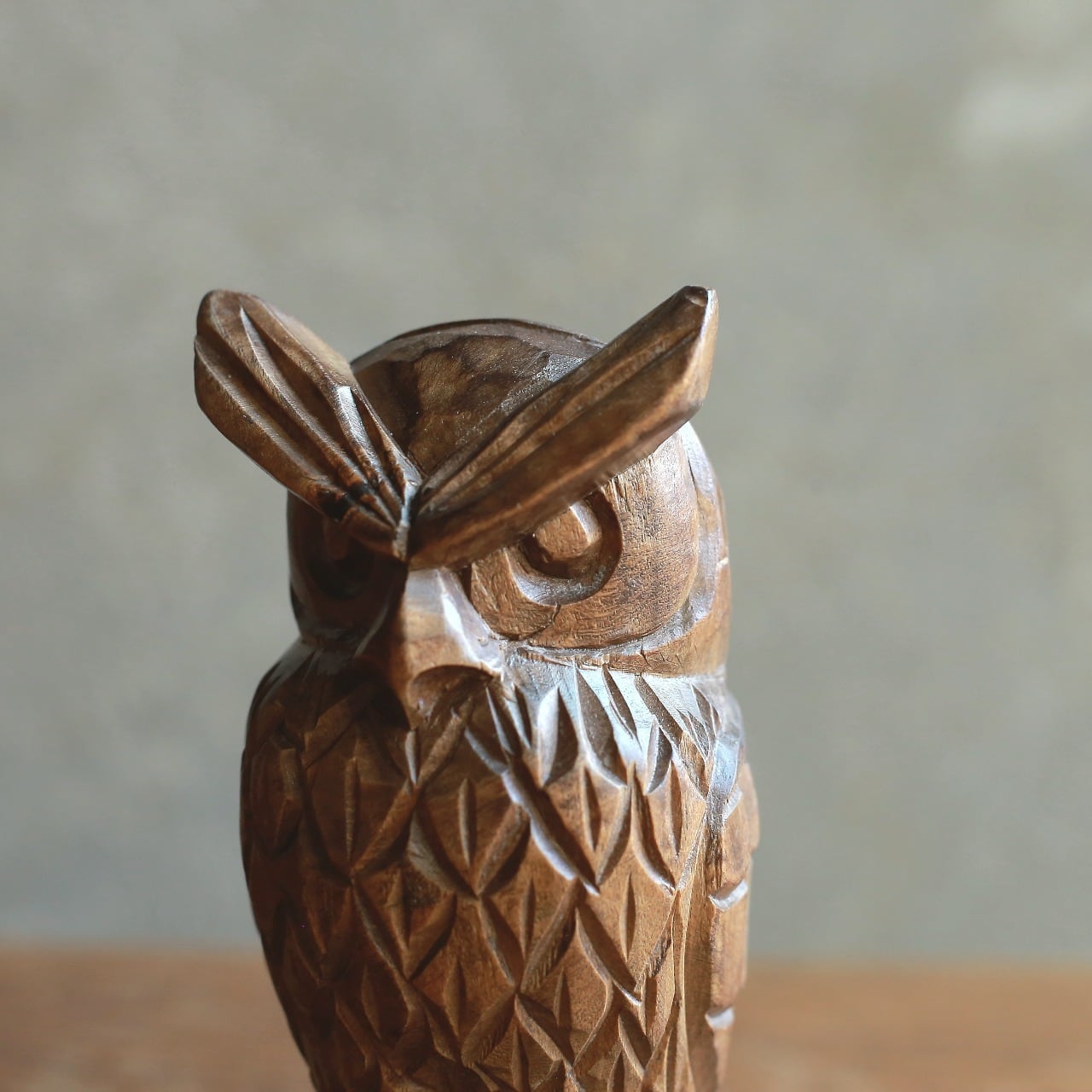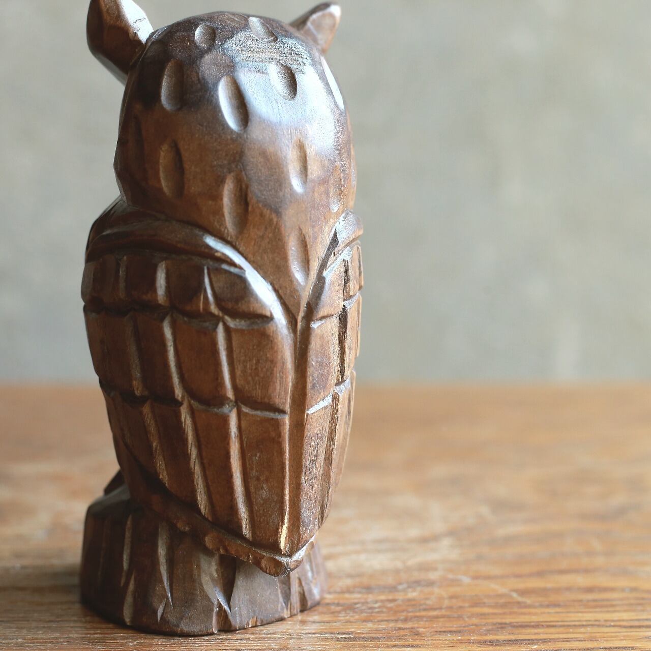 木彫り 梟(ミミズク) ヴィンテージ置物|木の温もりを感じるレトロオブジェ
