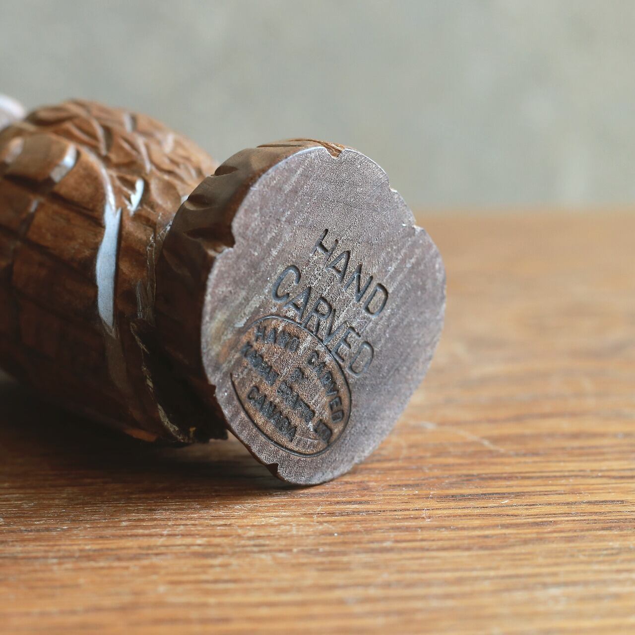 木肌のぬくもりと力強い彫り跡が目を引く、