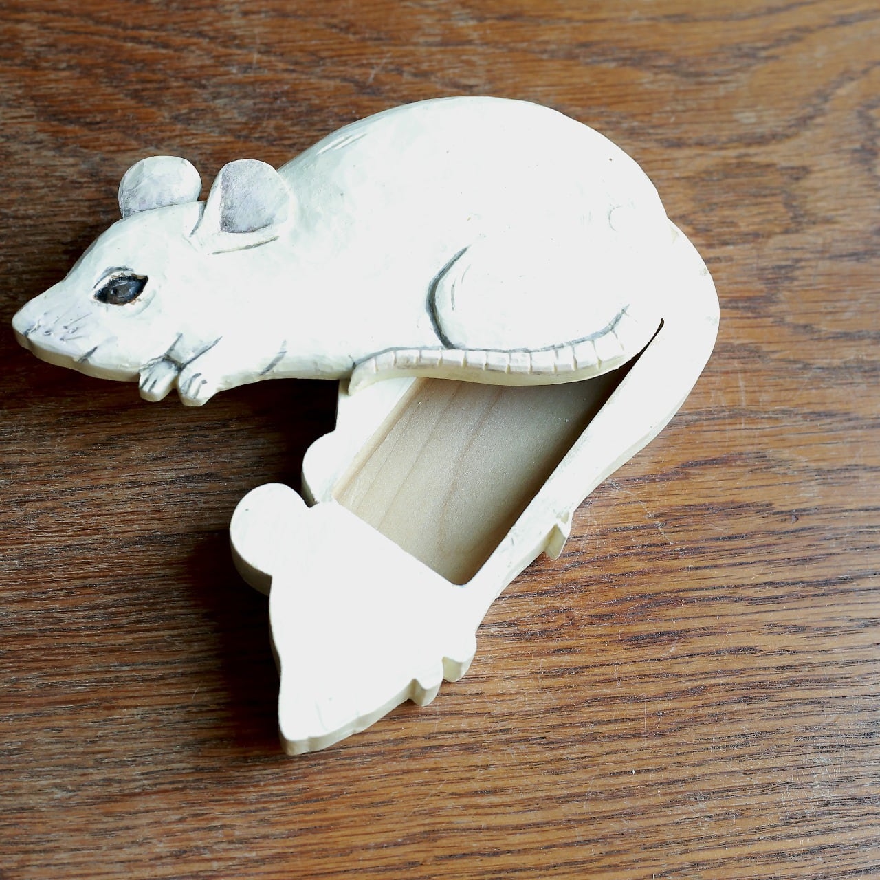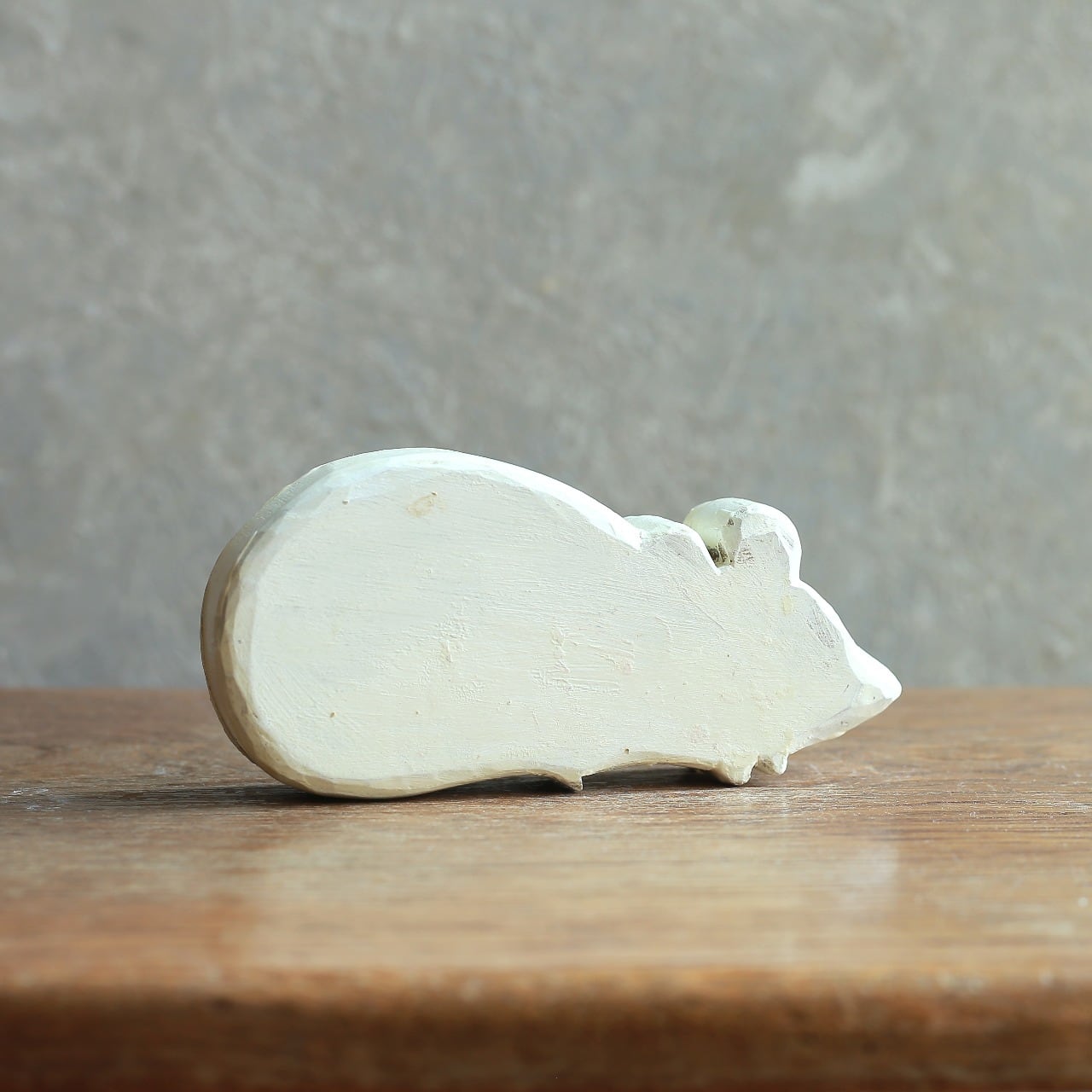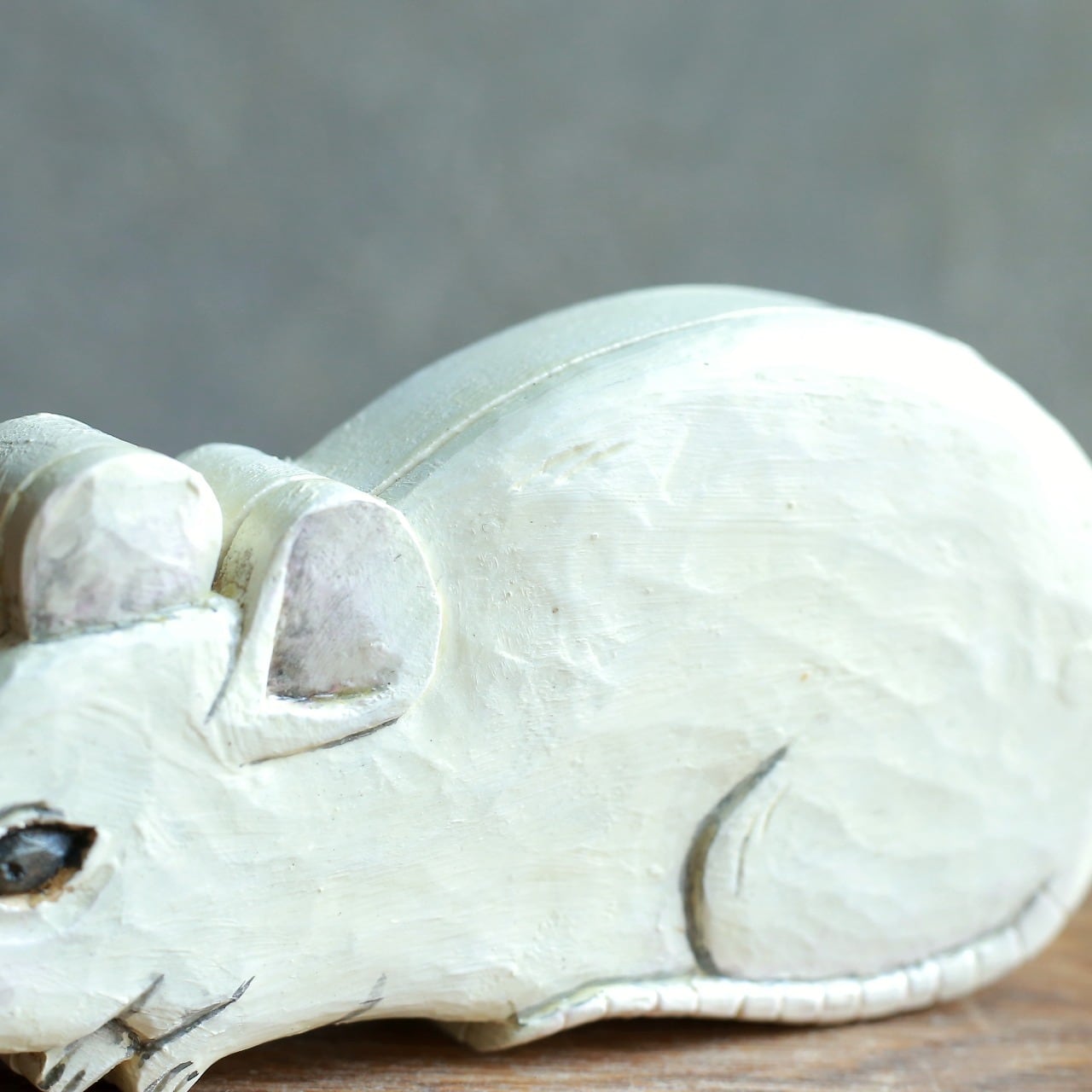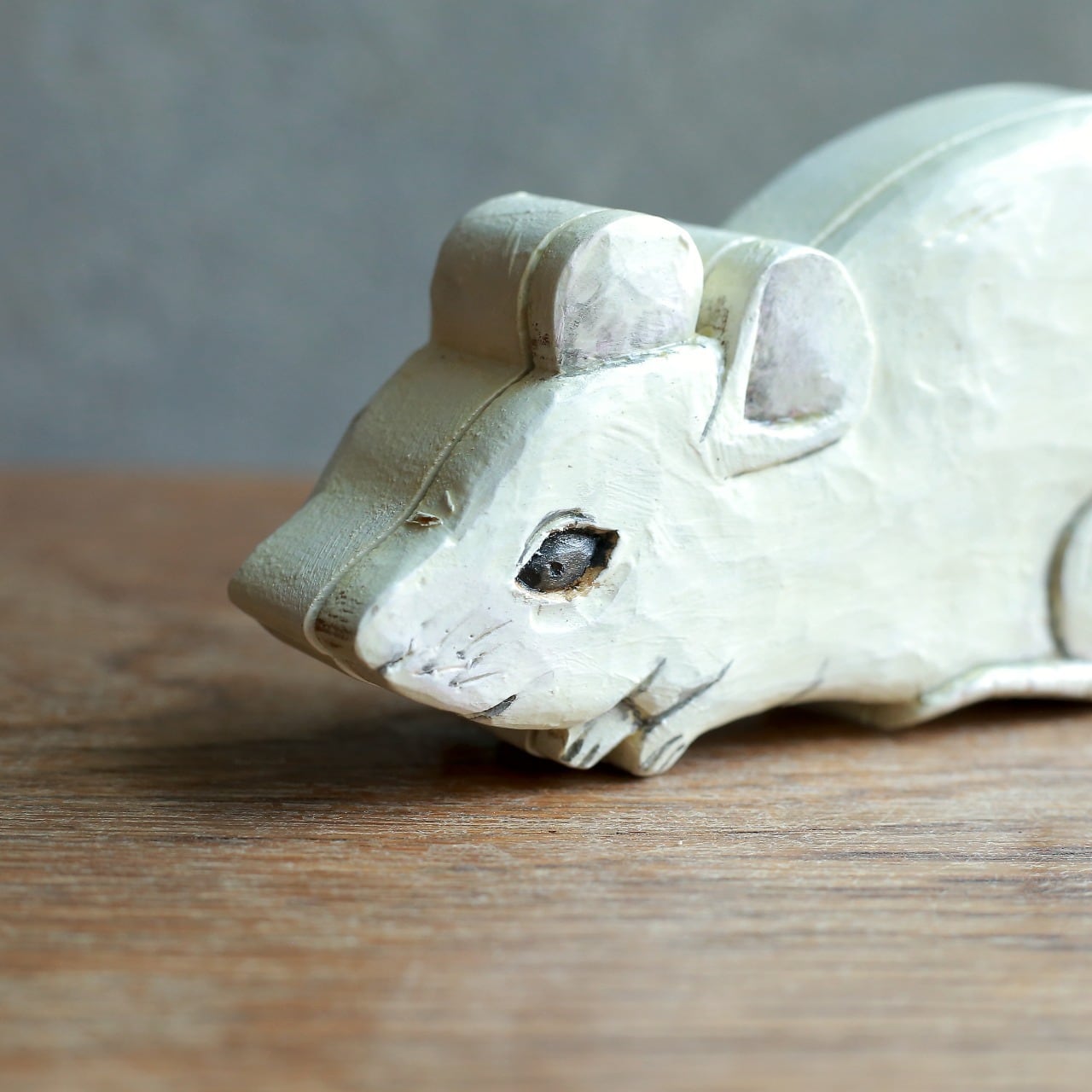 木彫り ネズミ 小物入れ ヴィンテージ 置物|素朴な白の木肌と収納を兼ねた愛らしい動物オブジェ