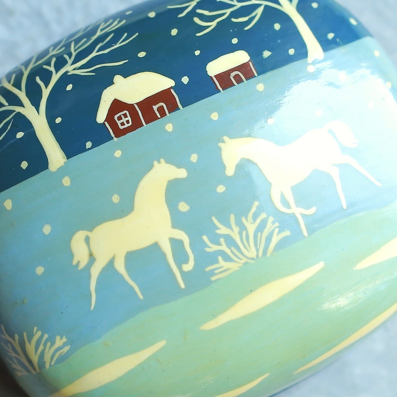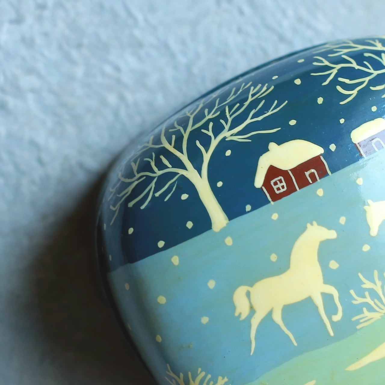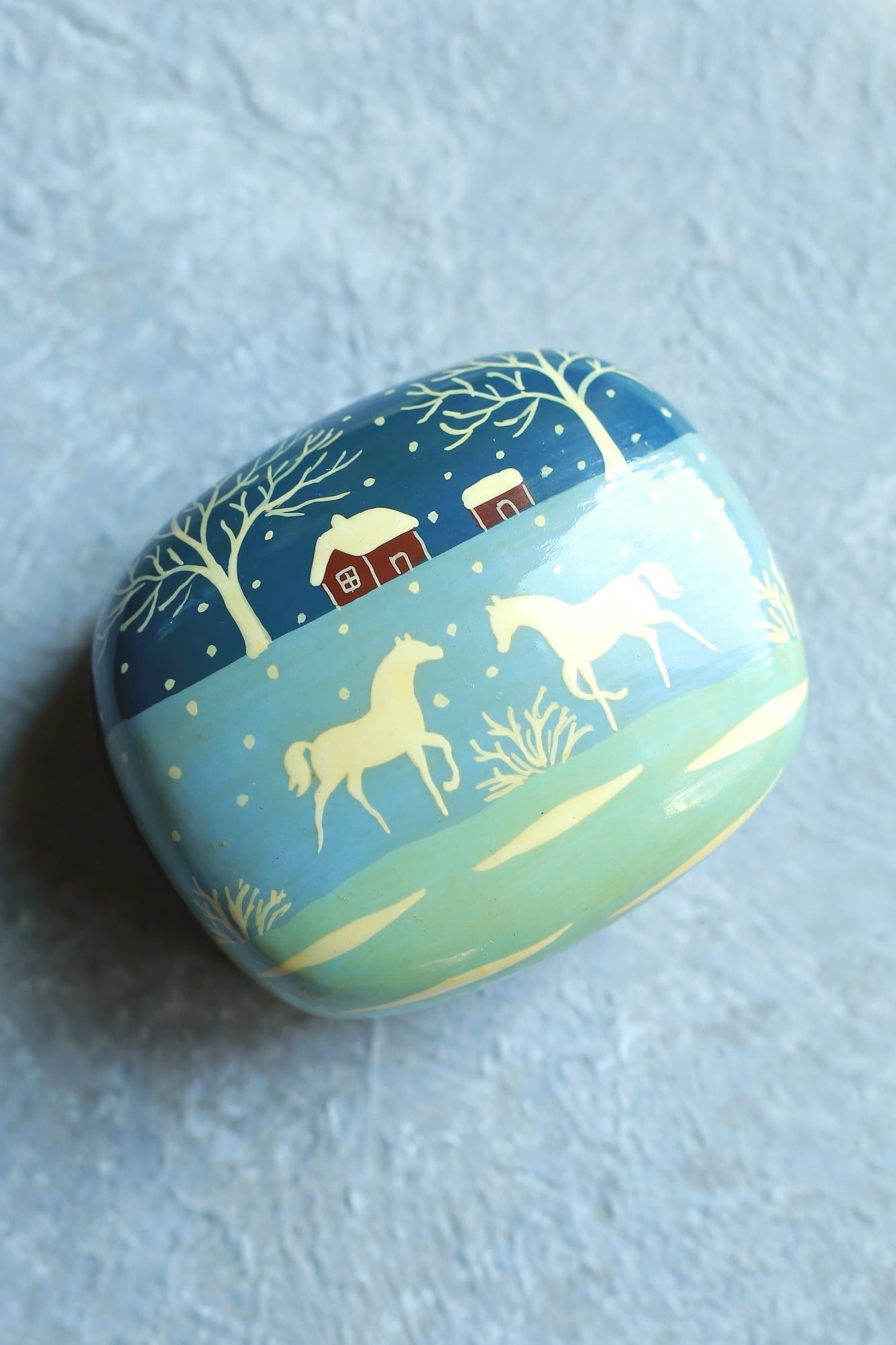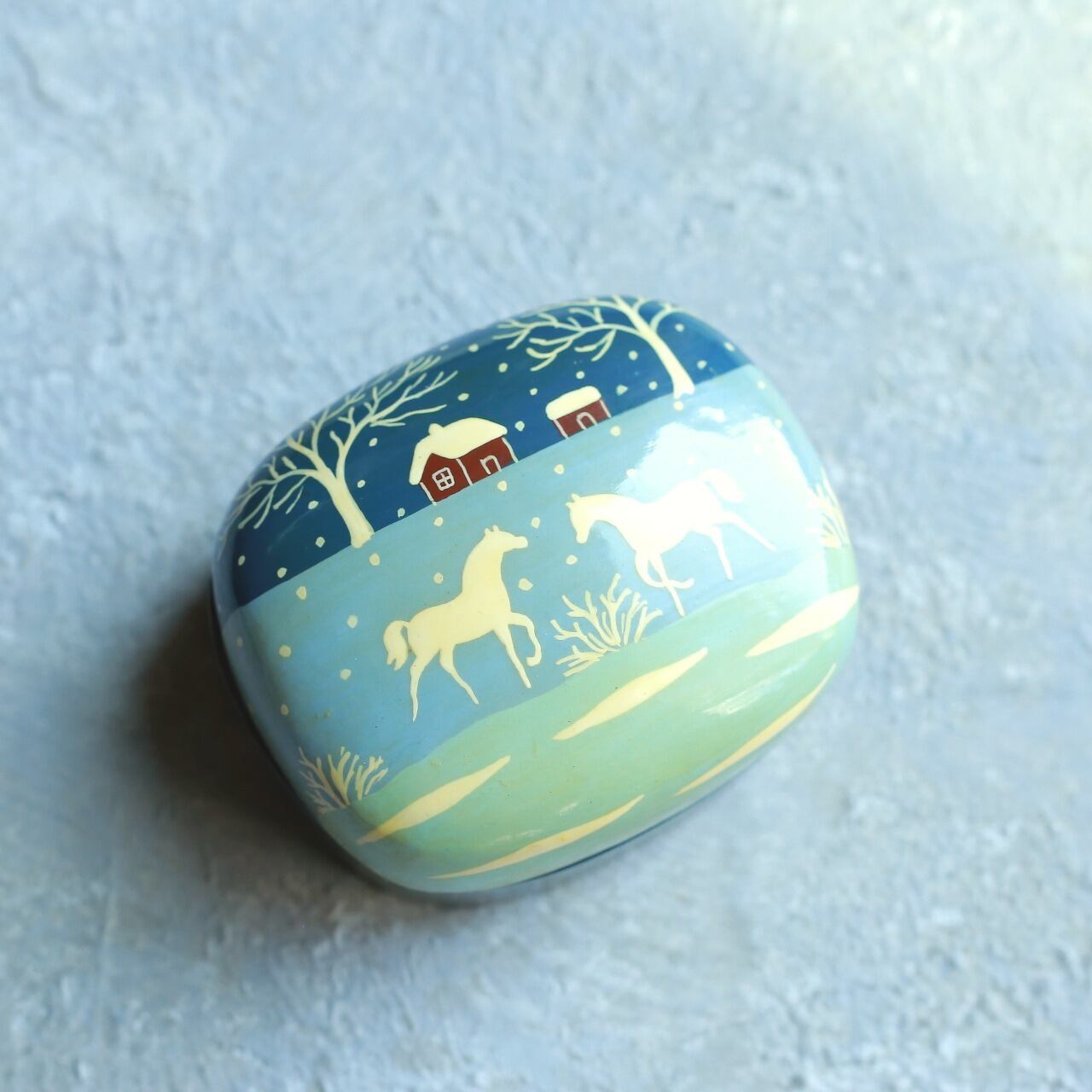 ペーパーマッシュ 小物入れ ヴィンテージ ボックス|雪景色と白馬が描かれた幻想的なハンドペイントの小箱