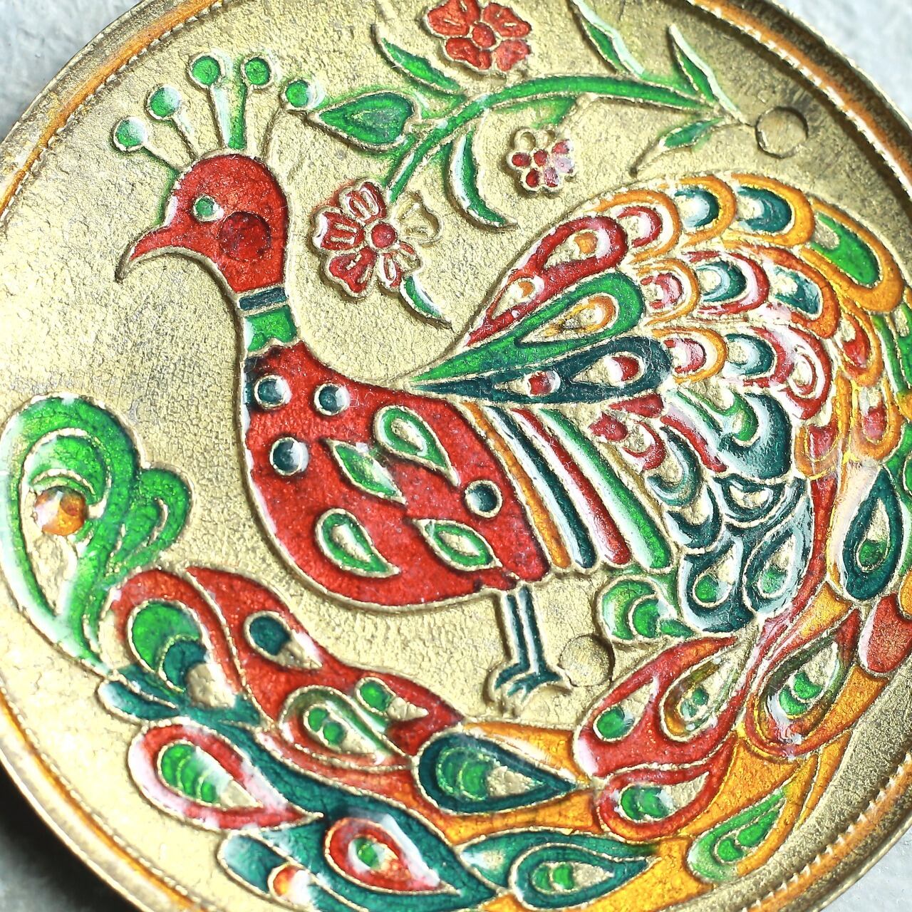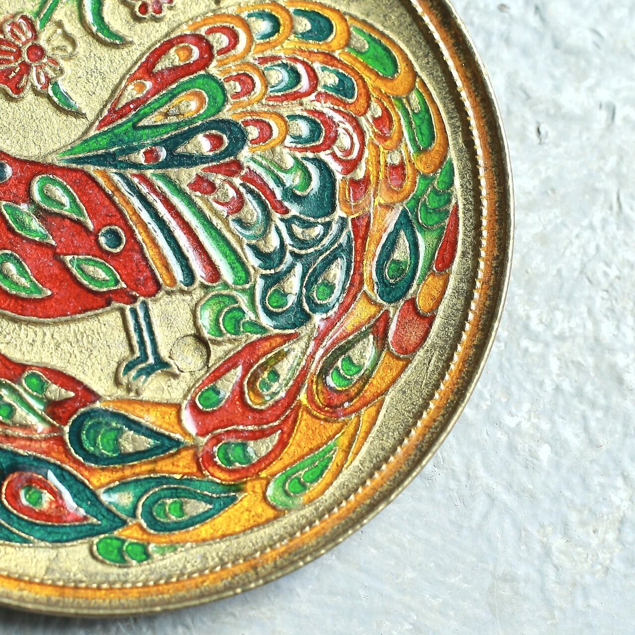 金属製 孔雀の飾り皿 ヴィンテージ プレート|鮮やかな色彩とエキゾチックな装飾 1