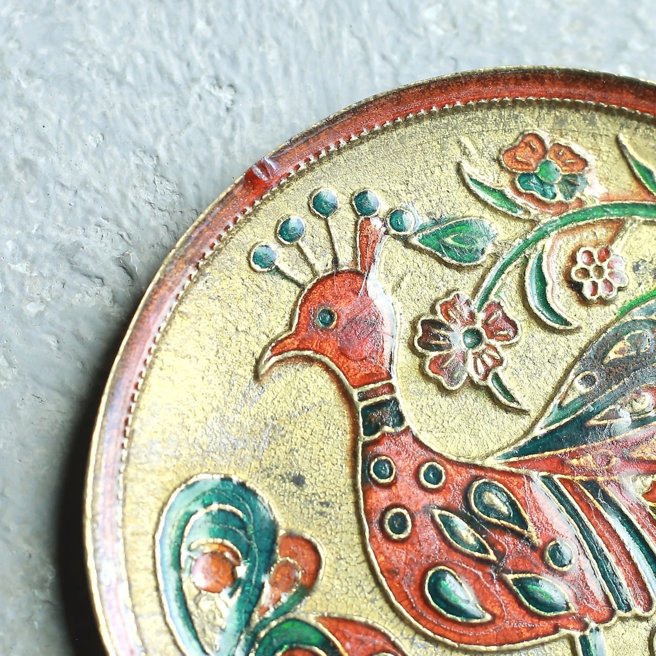 金属製 孔雀の飾り皿 ヴィンテージ プレート|鮮やかな色彩とエキゾチックな装飾 2