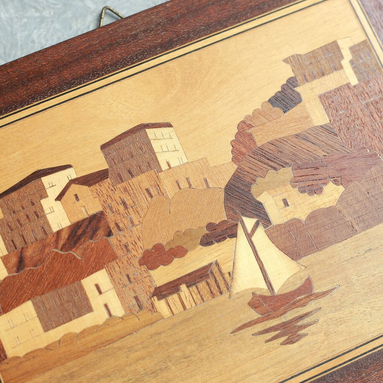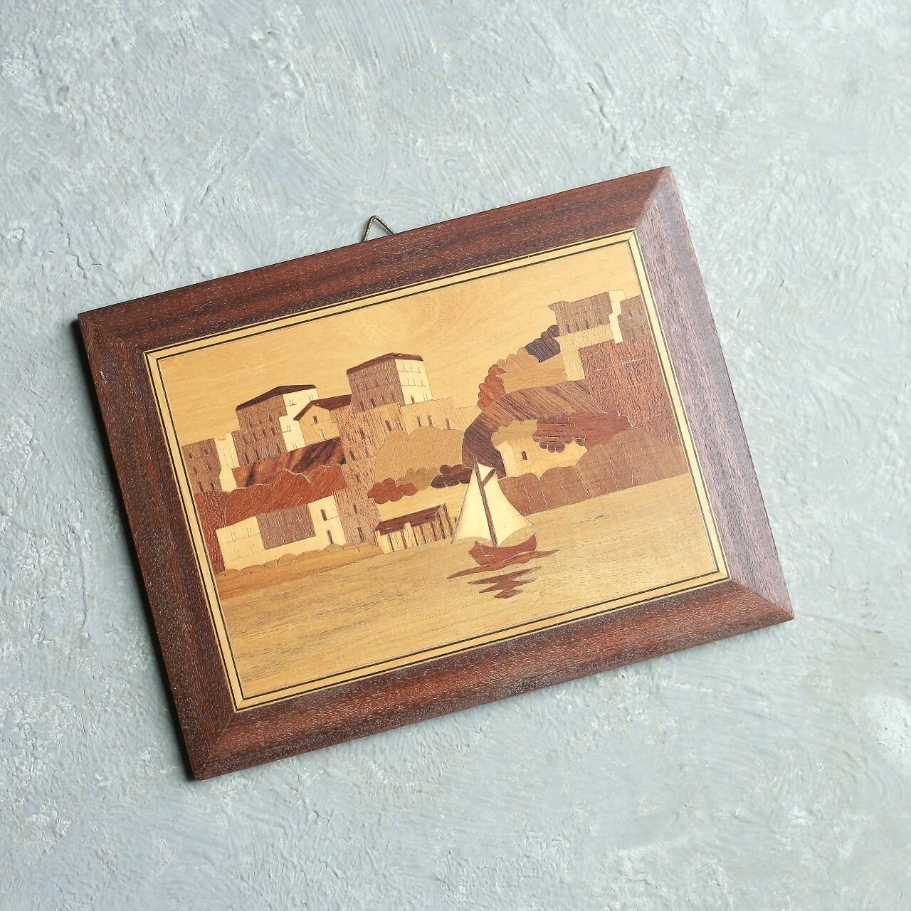 【キーワード】 木象嵌 / 象嵌細工 / 壁掛け / アートパネル / ヴィンテージ / レトロ / ウォールデコ / インテリア雑貨 / 港町 / 風景画 / 木製フレーム / 寄木細工 / アンティーク