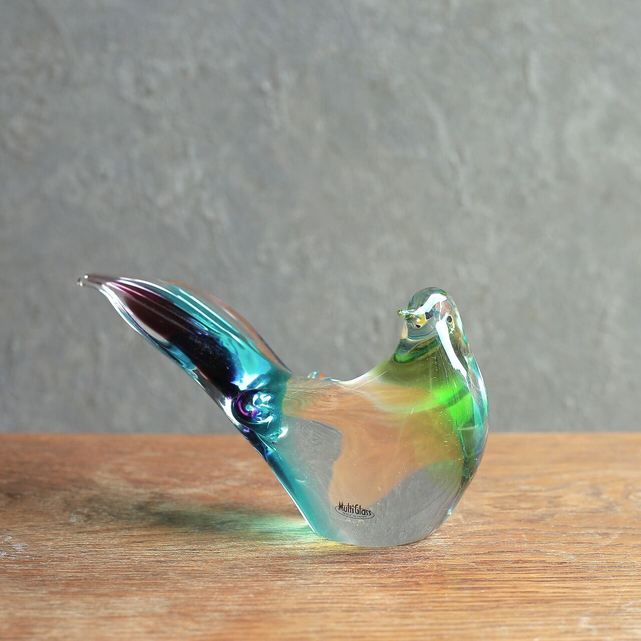マルティグラス 鳥のガラスオブジェ ヴィンテージ置物|光を纏う色鮮やかな昭和レトロインテリア 1