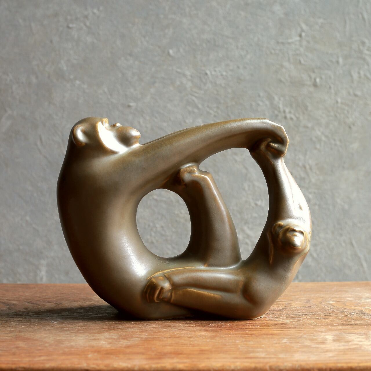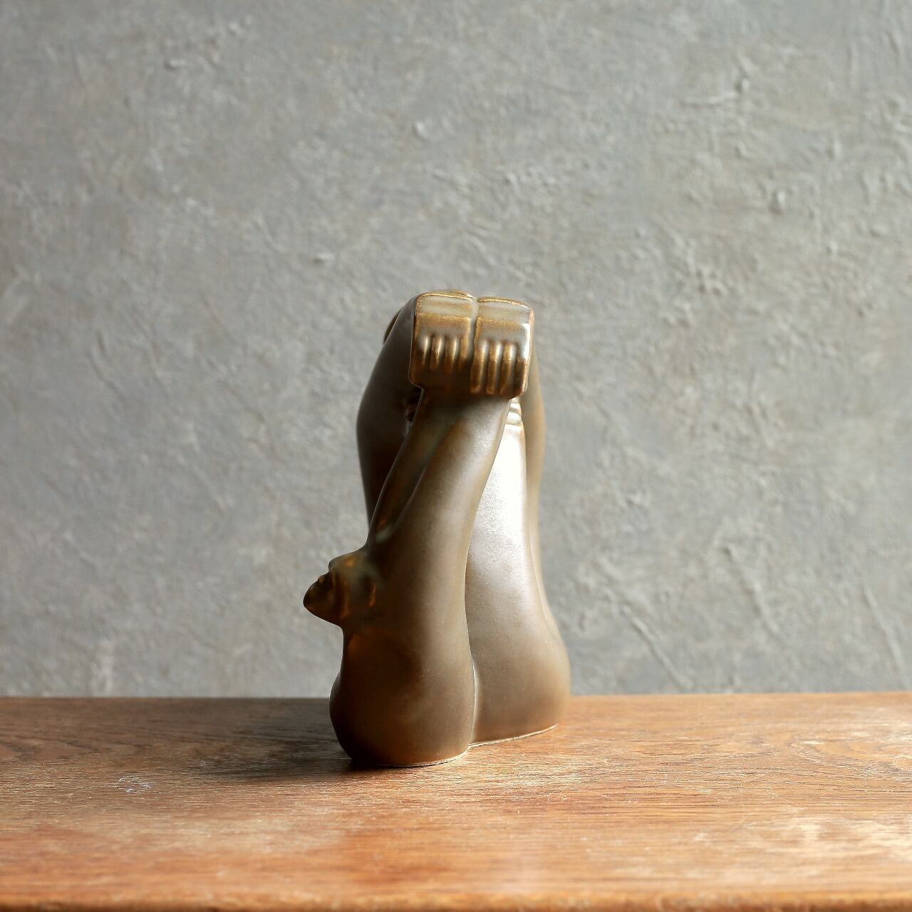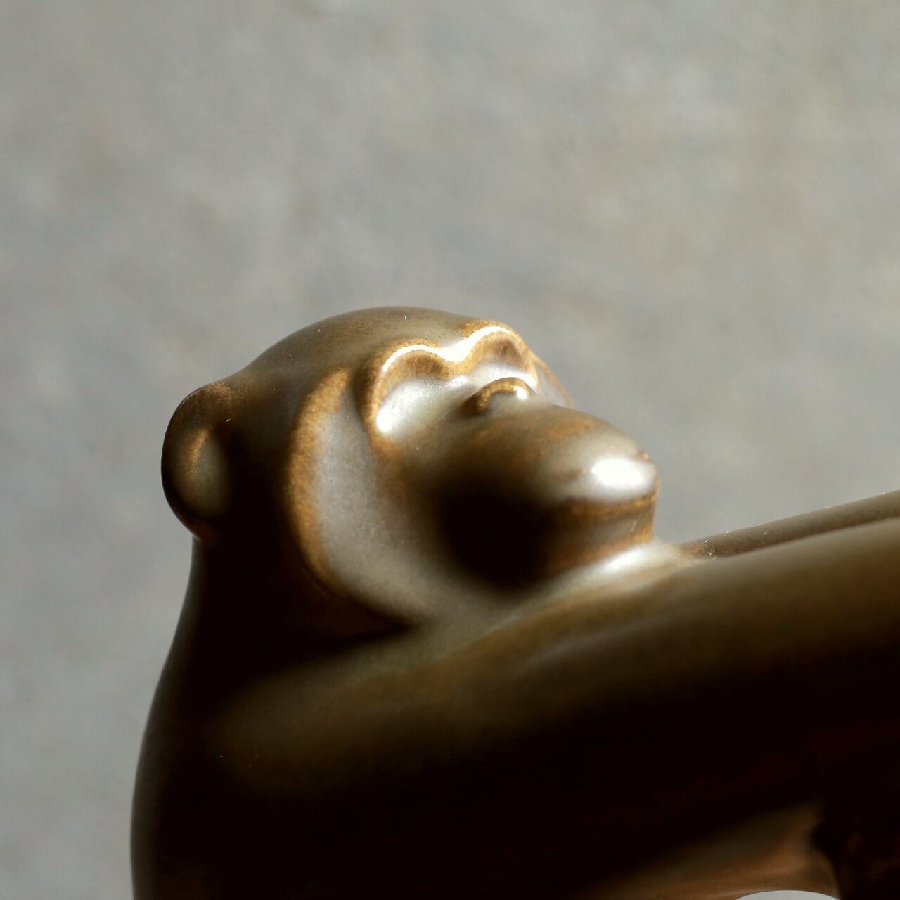 陶器の置物 / 猿のオブジェ / ヴィンテージ雑貨 / 昭和レトロ / インテリアオブジェ / 陶芸品 / アンティーク / 古道具 / 縁起物 / 親子猿