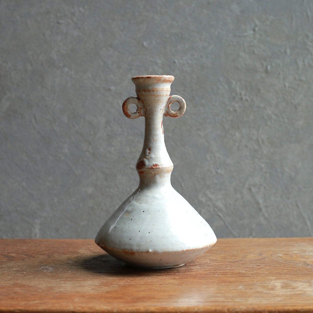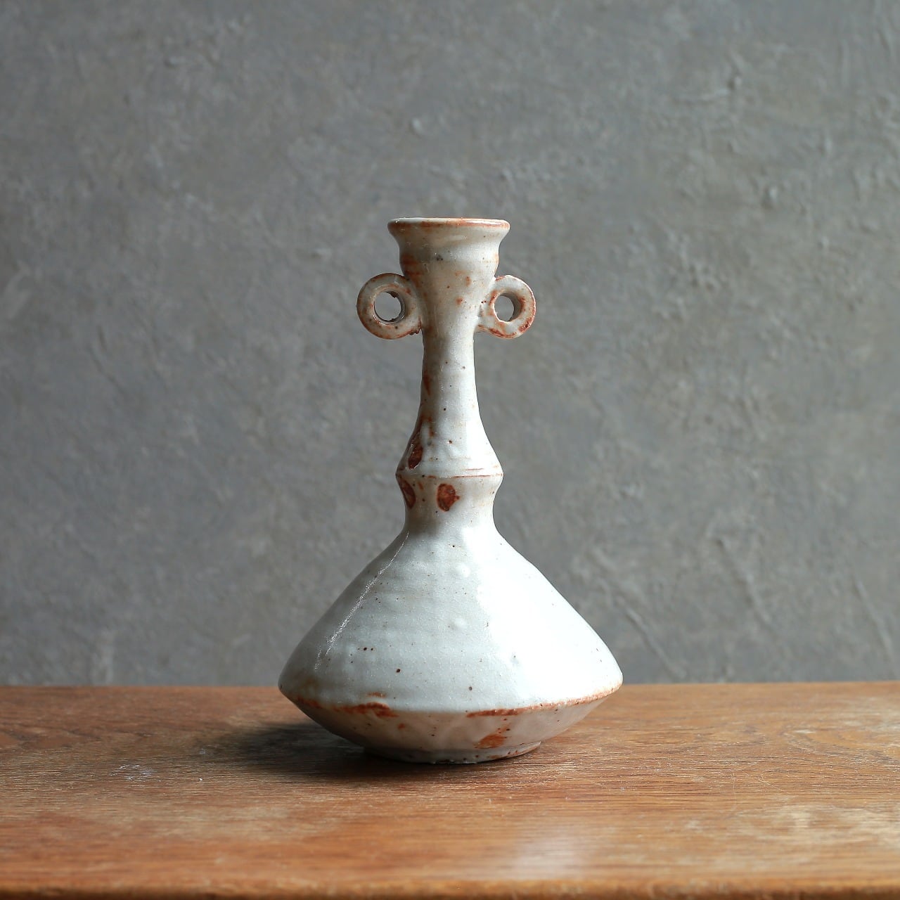 【キーワード】陶器花器 / 一輪挿し / 白釉 / ヴィンテージ雑貨 / 昭和レトロ / インテリアオブジェ / 双耳瓶 / アンティーク / 花瓶 / 古道具