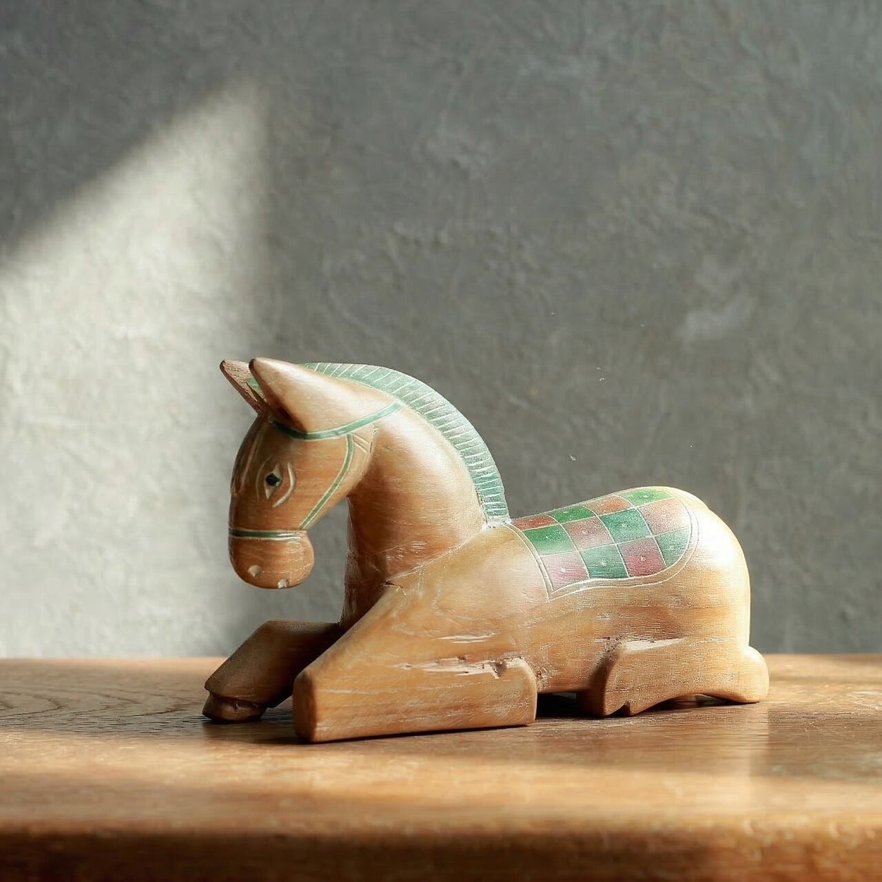 ちょっと一休みする、鮮やかな色味の馬 1|木彫り 馬 ヴィンテージ置物