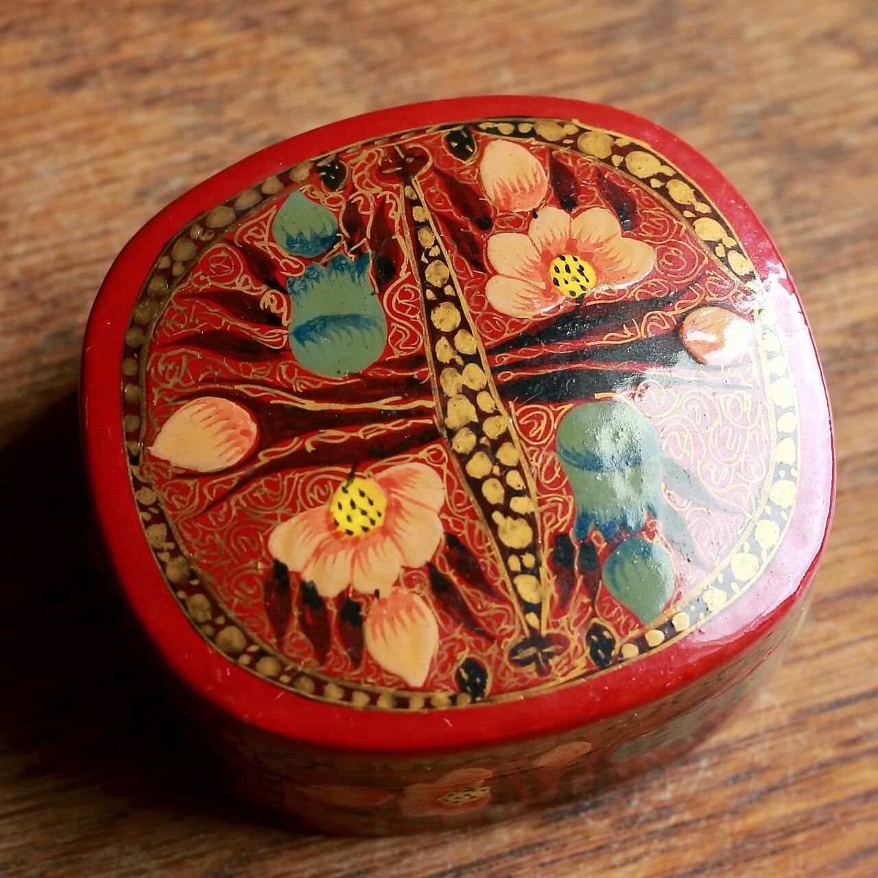 【キーワード】ペーパーマッシュ / 小物入れ / 花柄 / ヴィンテージ / 小箱 / ピルケース / アクセサリーケース / ハンドペイント / レトロ / アンティーク / エキゾチック / インテリア