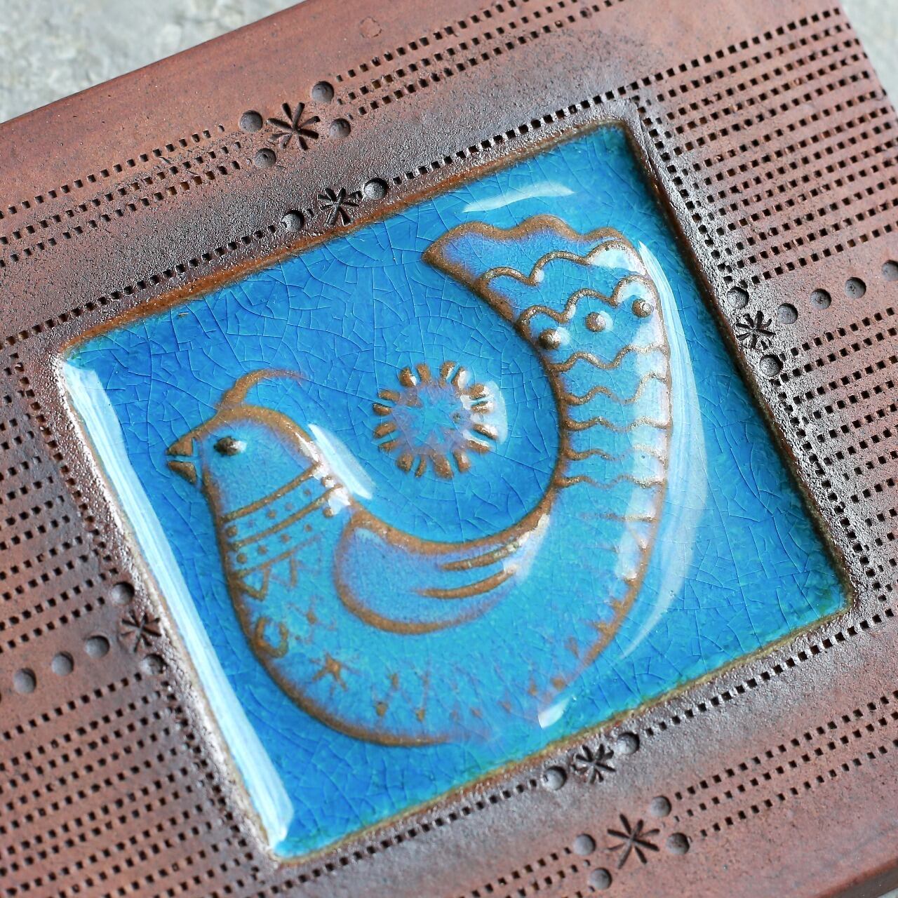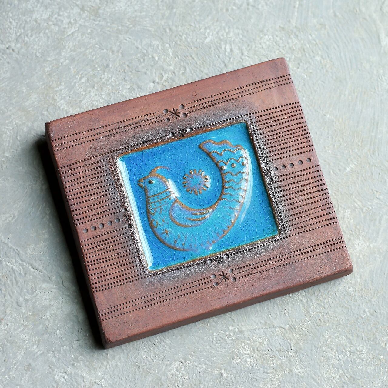 鮮やかなブルーが目を引く、可愛い小鳥の陶板|鳥モチーフ 陶板 壁掛け ウォールデコ 陶器オブジェ