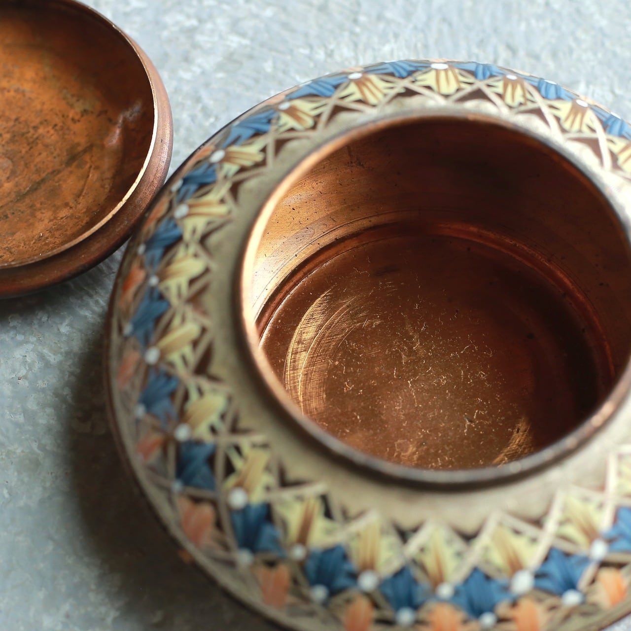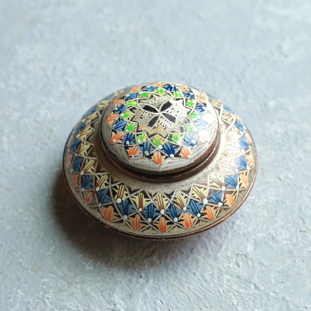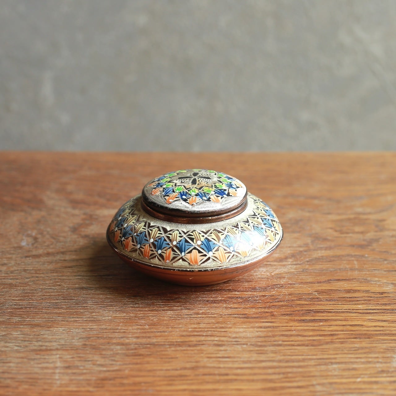 幾何学模様が美しい、銅の小物入れ|ヴィンテージ 銅製の小物入れ 蓋物 幾何学模様