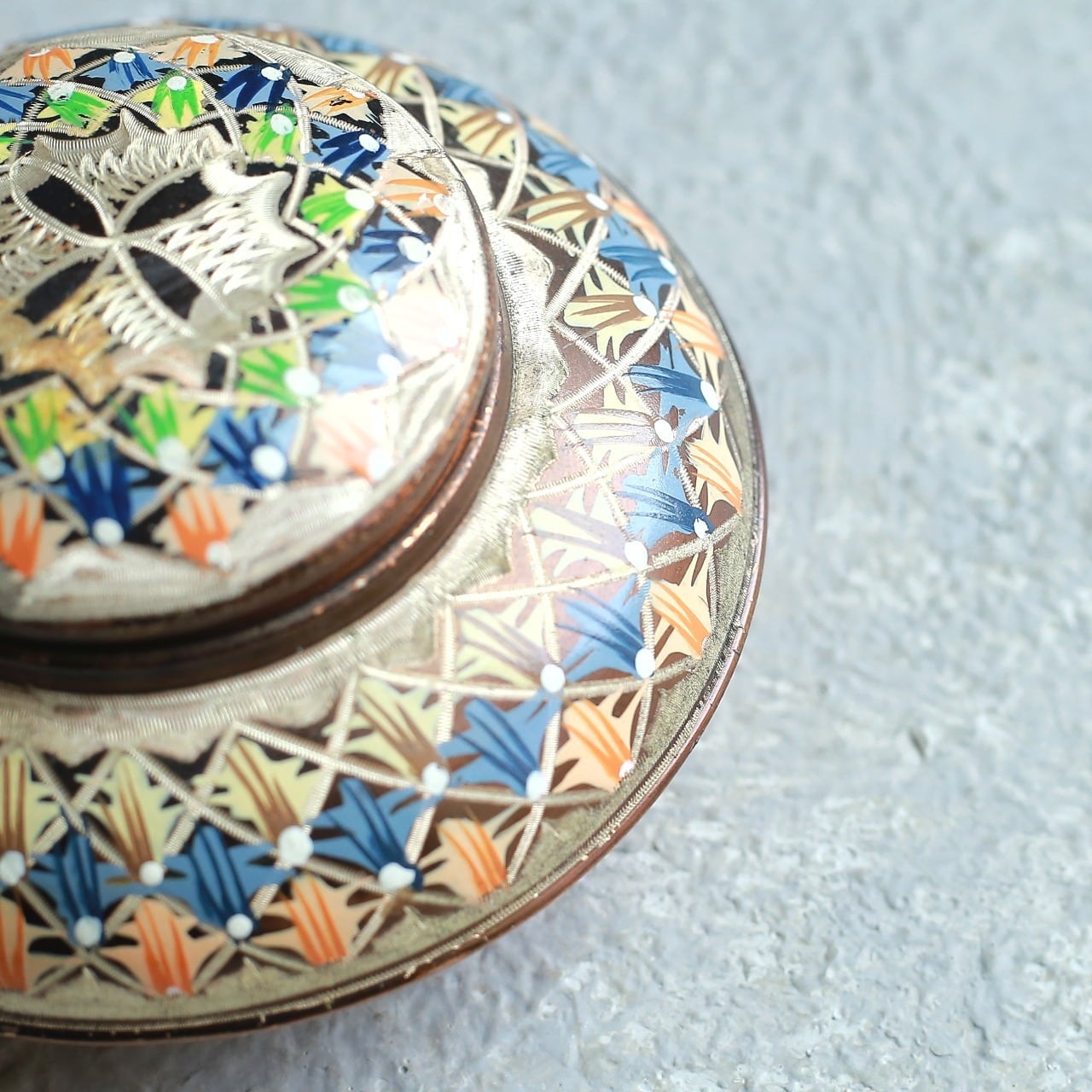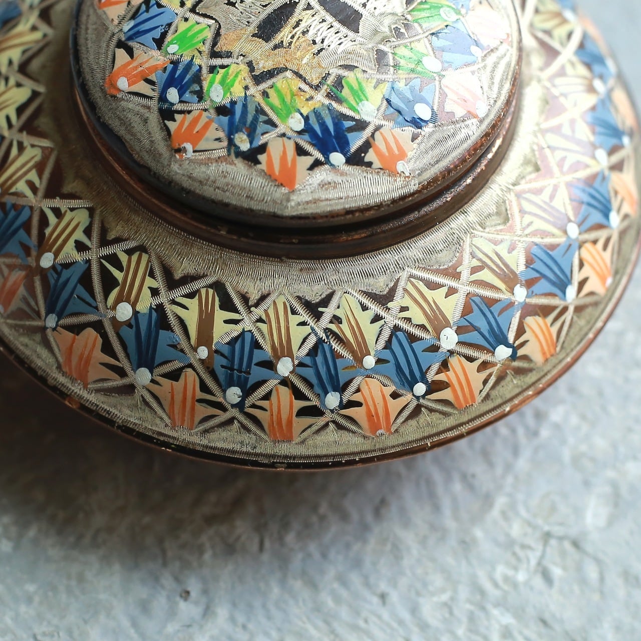 ぎっしりと施された蓋物オブジェ。