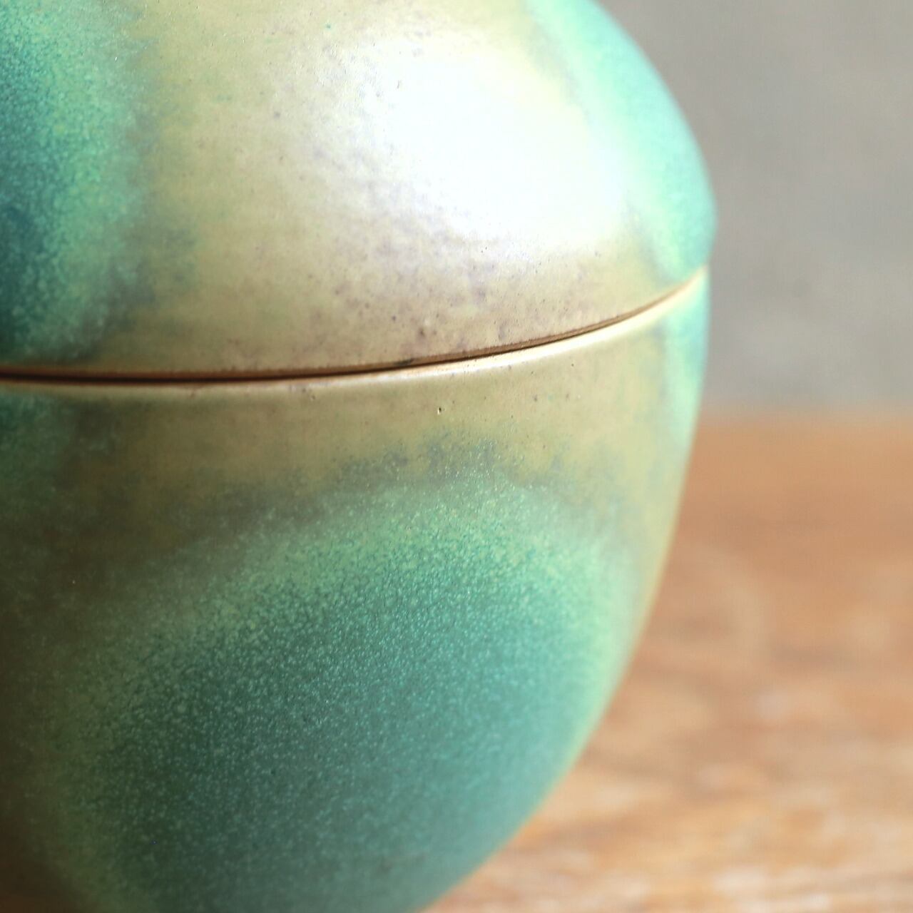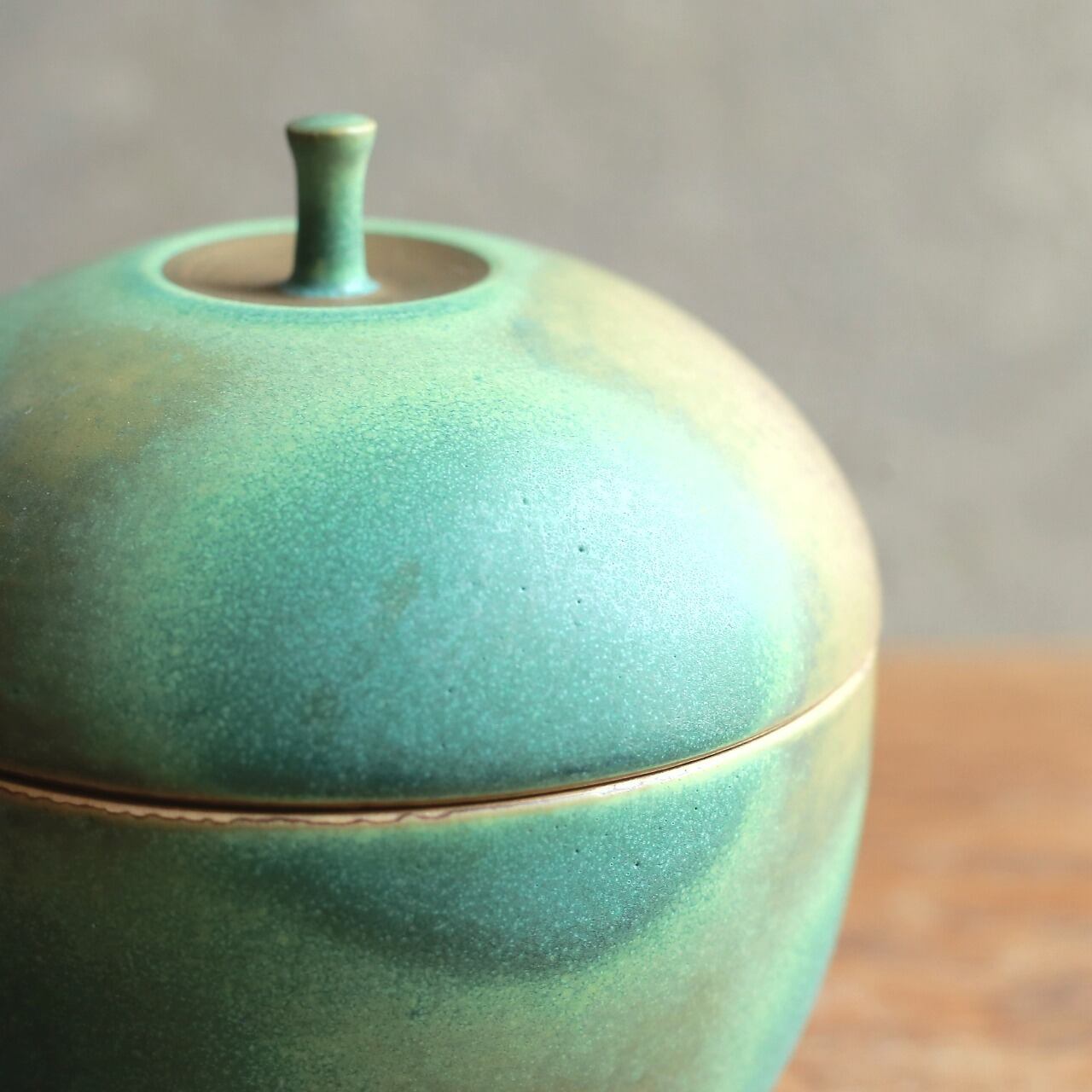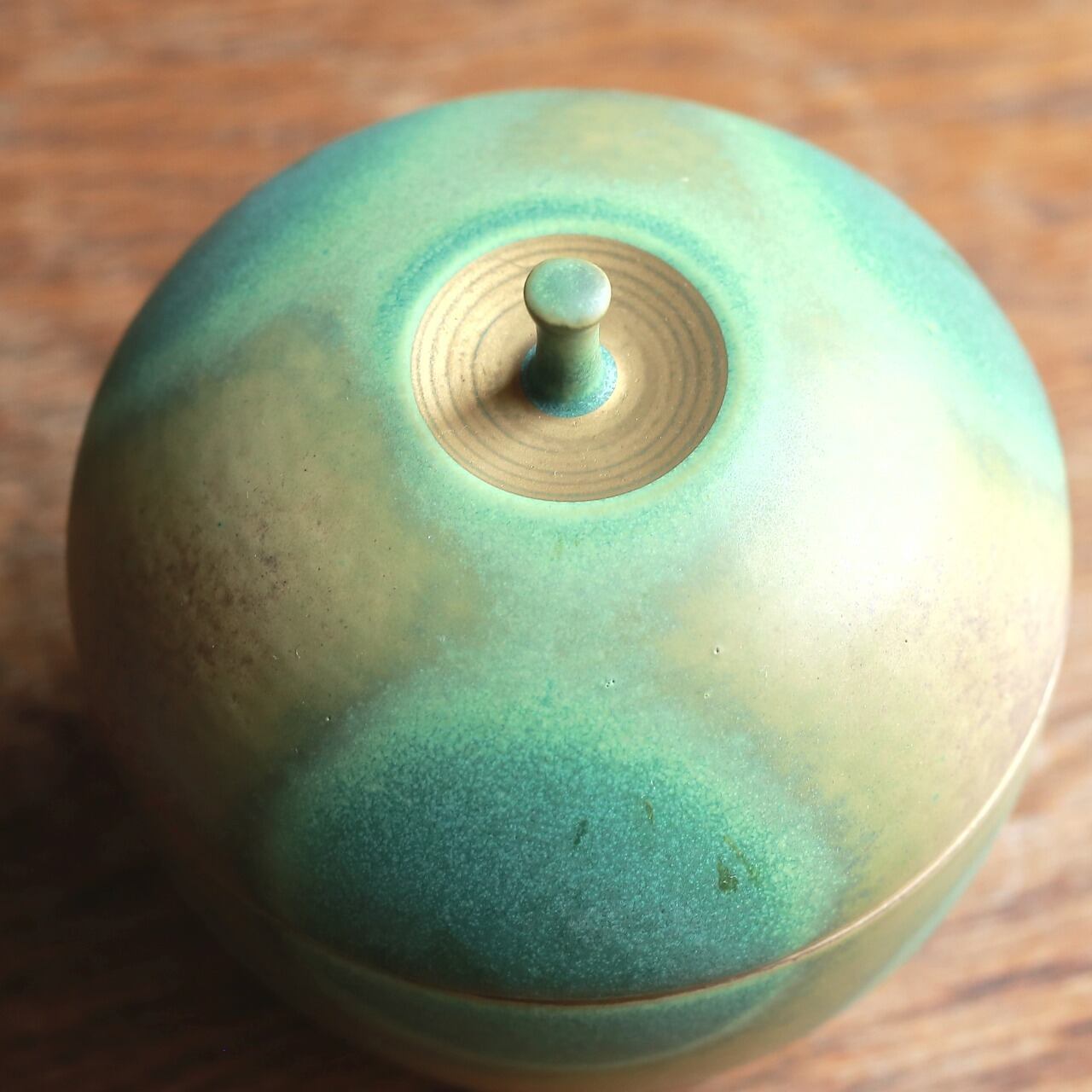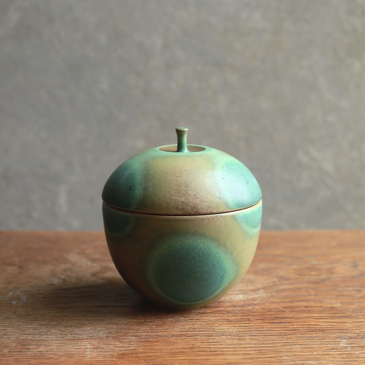 独特の釉薬の表情が魅力的な蓋物です。