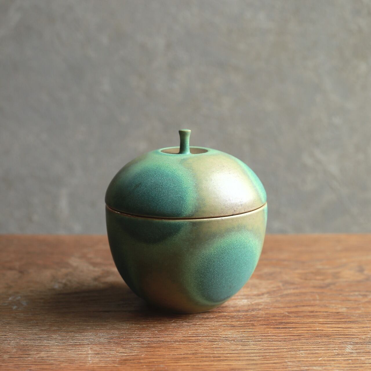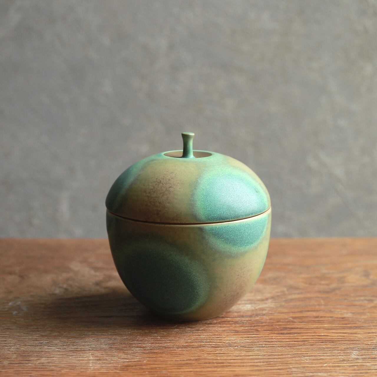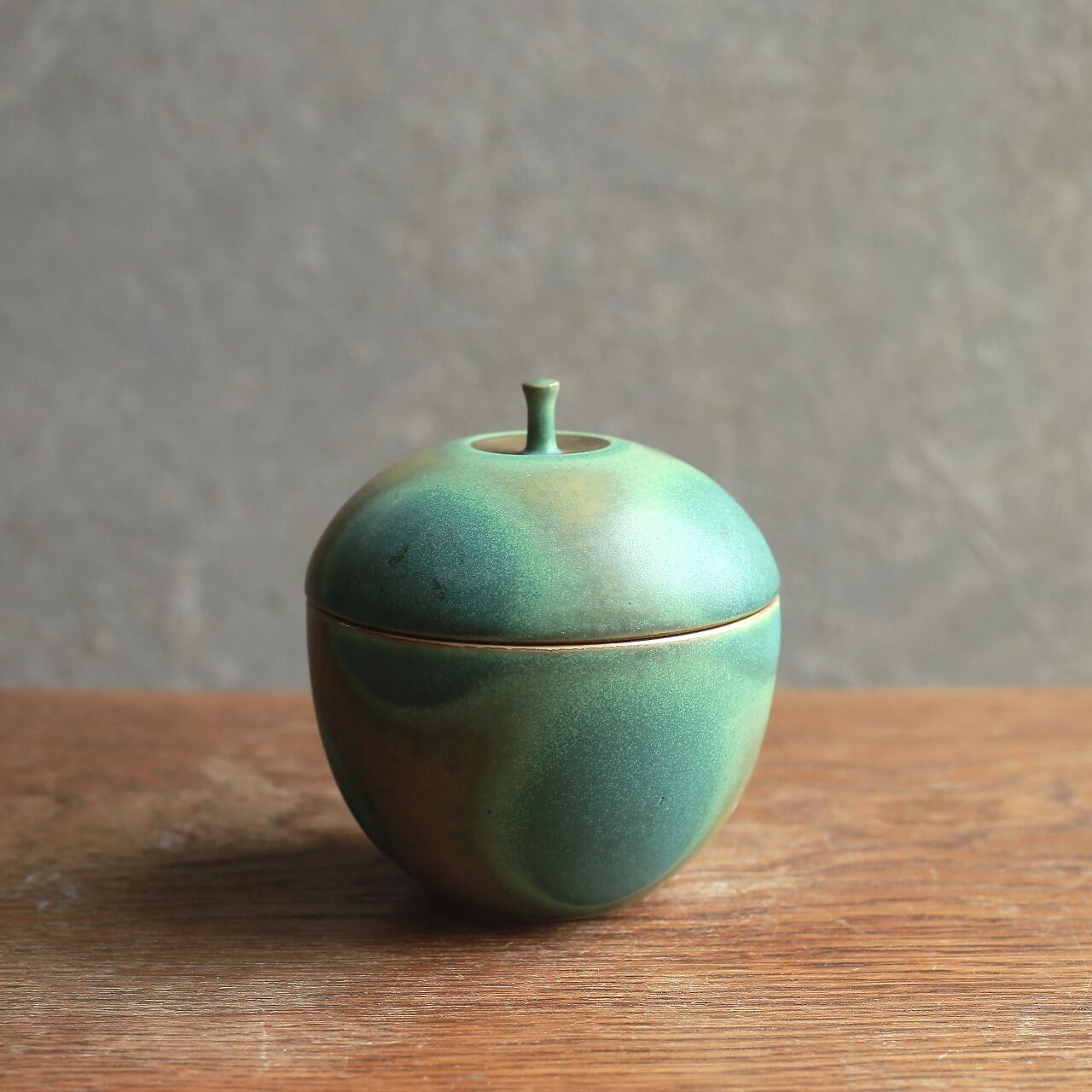 鮮やかなグリーンが目を引く、リンゴの小物入れ|りんご型 陶器製 小物入れ 蓋物