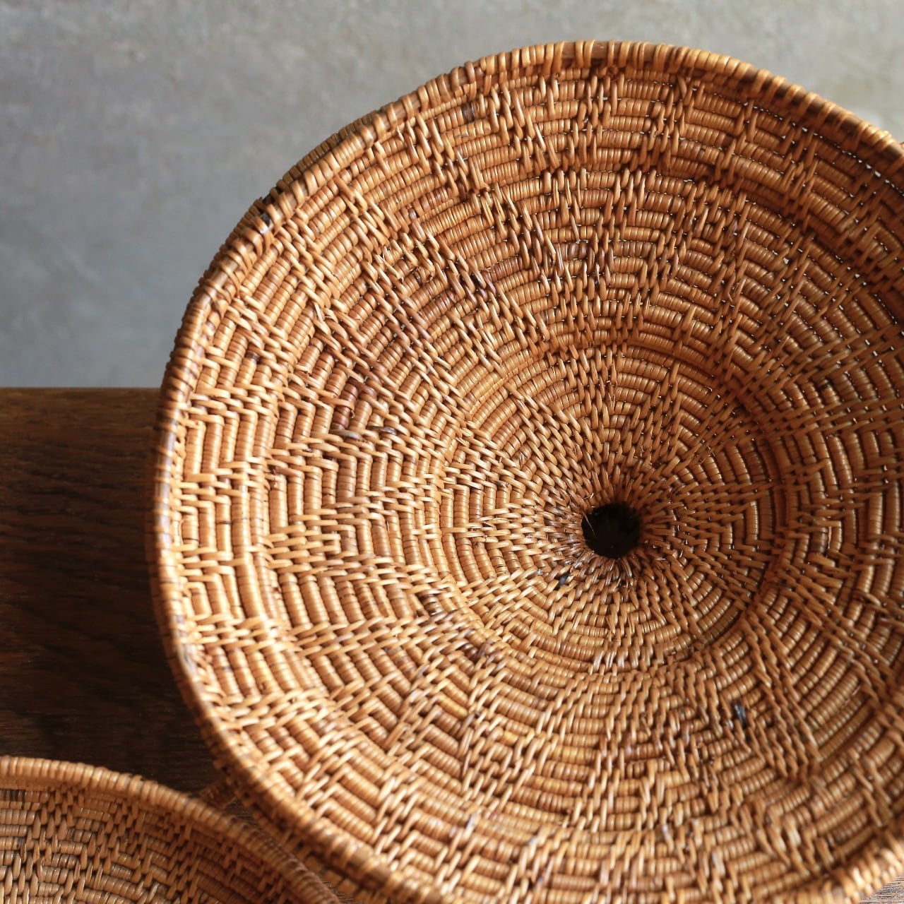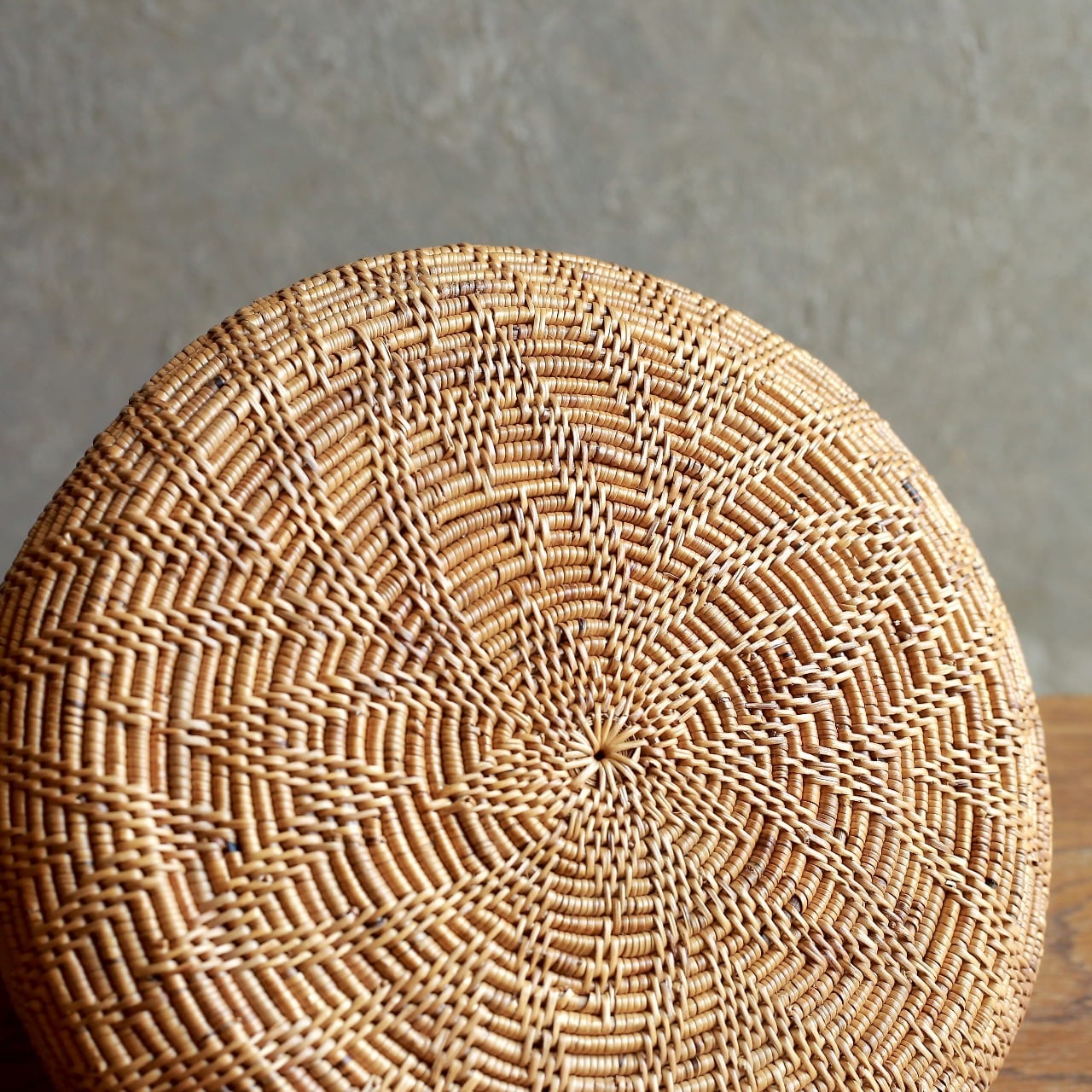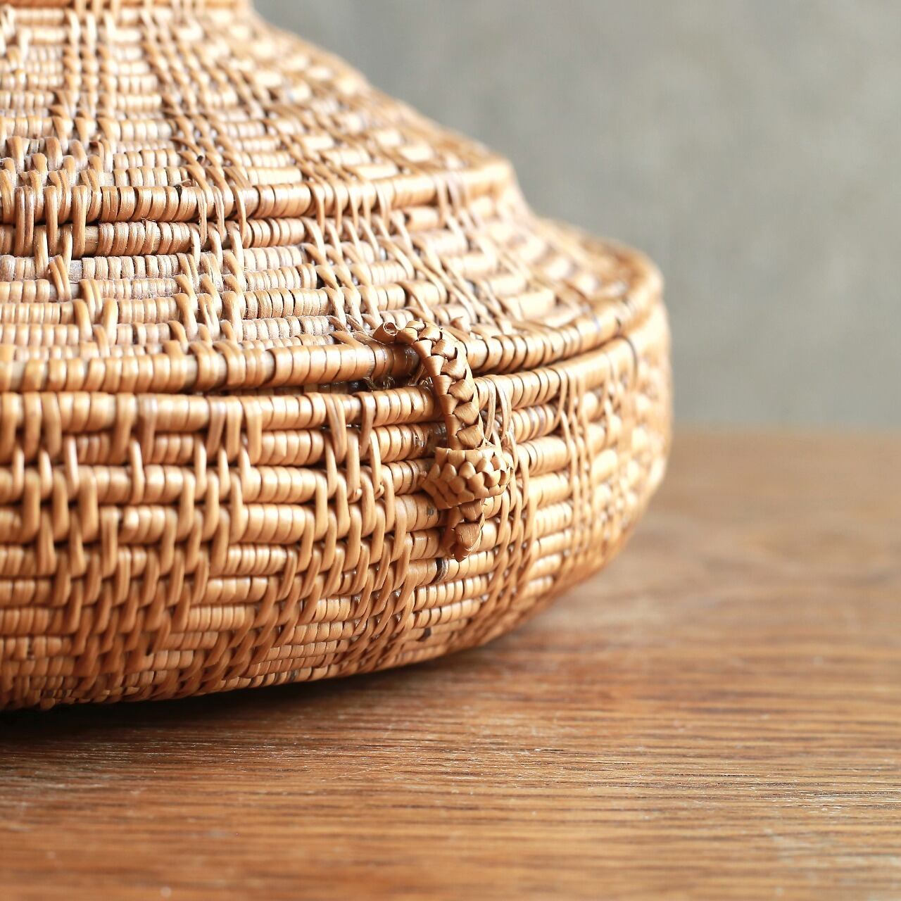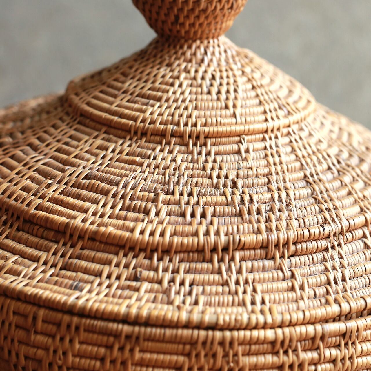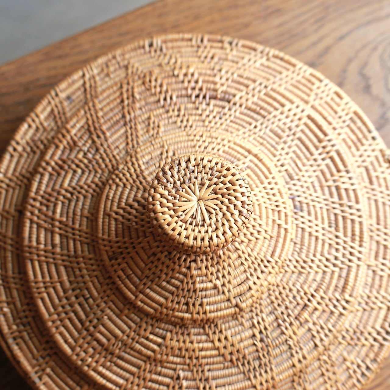 編み模様が美しい、とんがり帽子の小物入れ|アタ 蓋付き小物入れ ラウンドバスケット
