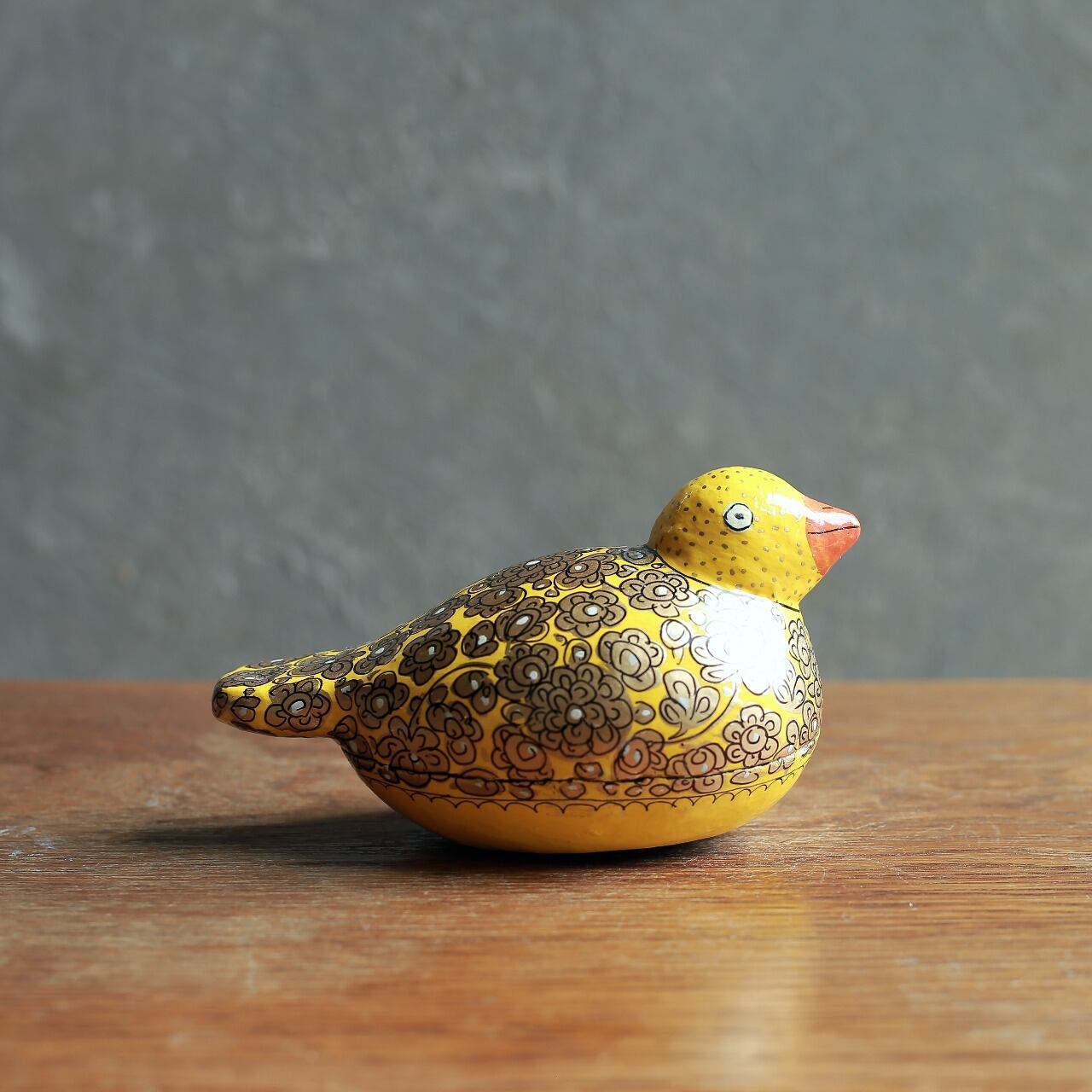 愛らしい目で見つめる、黄色い鳥のペーパーマッシュ