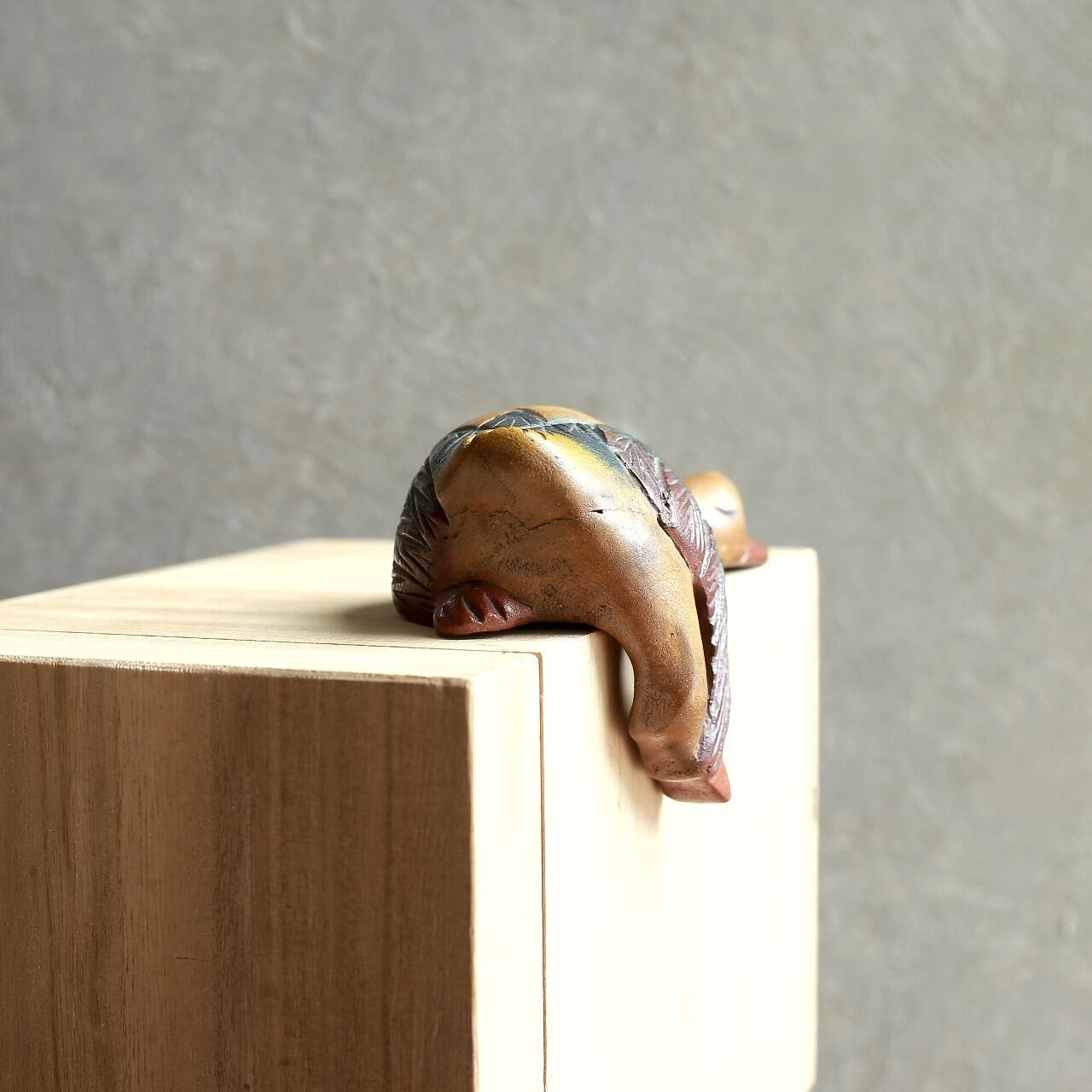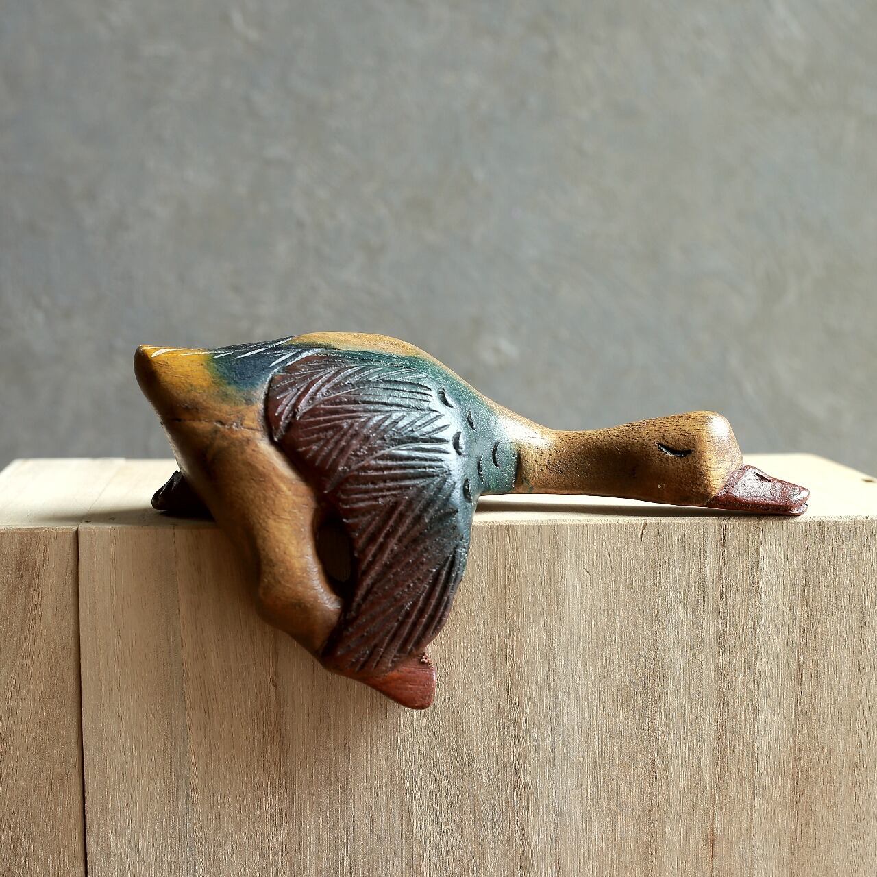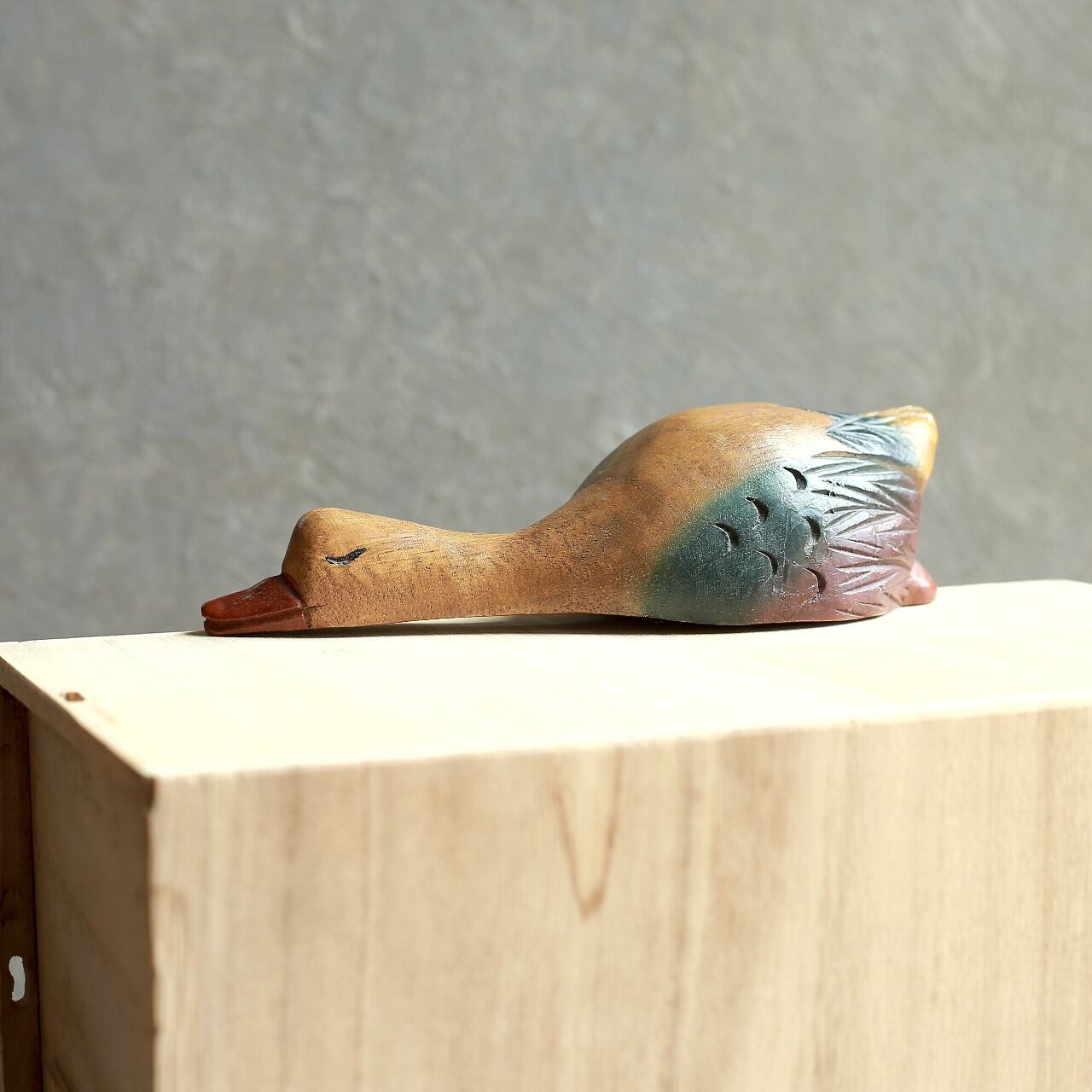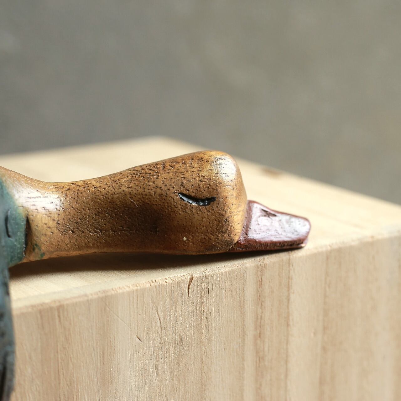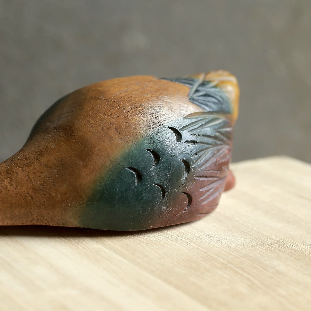 カモ特有の色合いが木肌によく馴染んでいます。