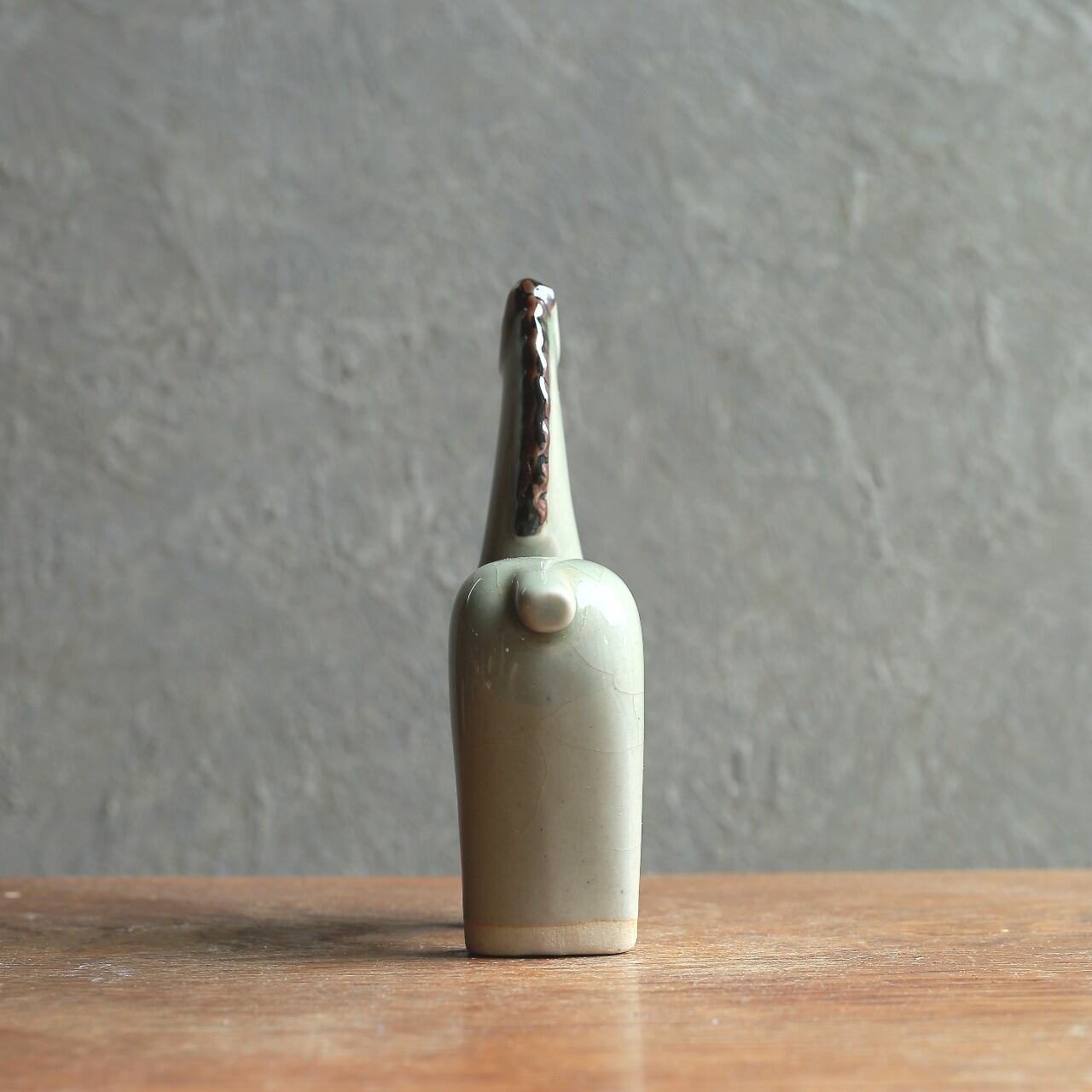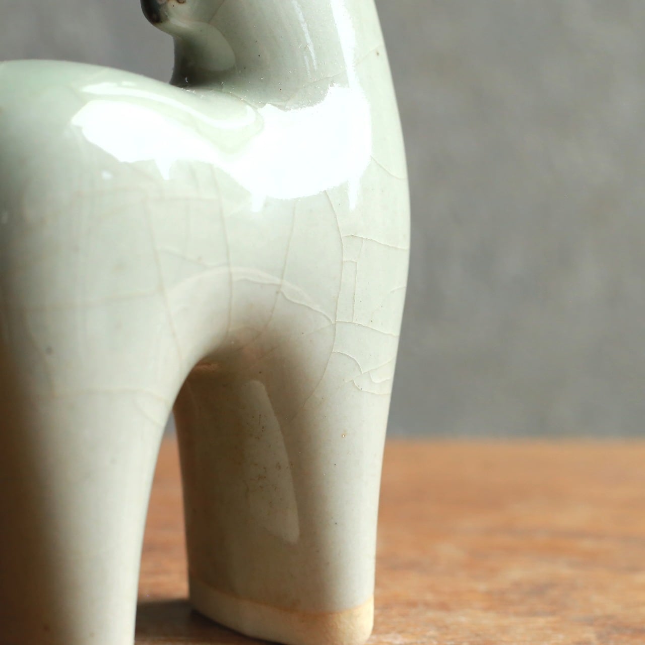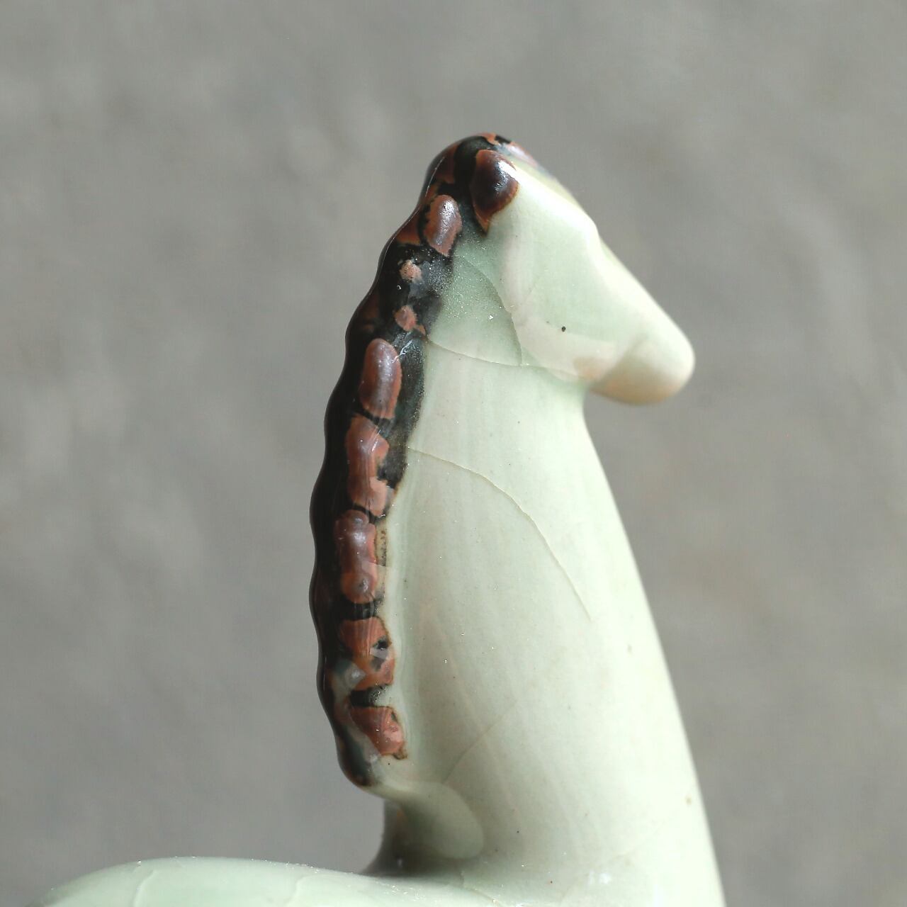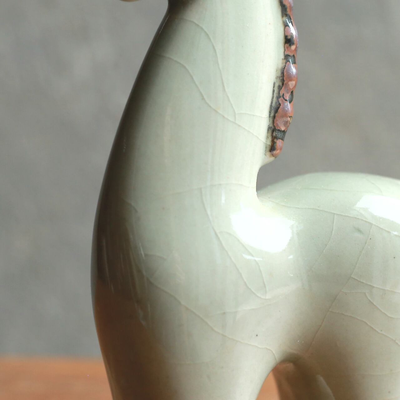 特徴的な、陶器製の馬の置物です。