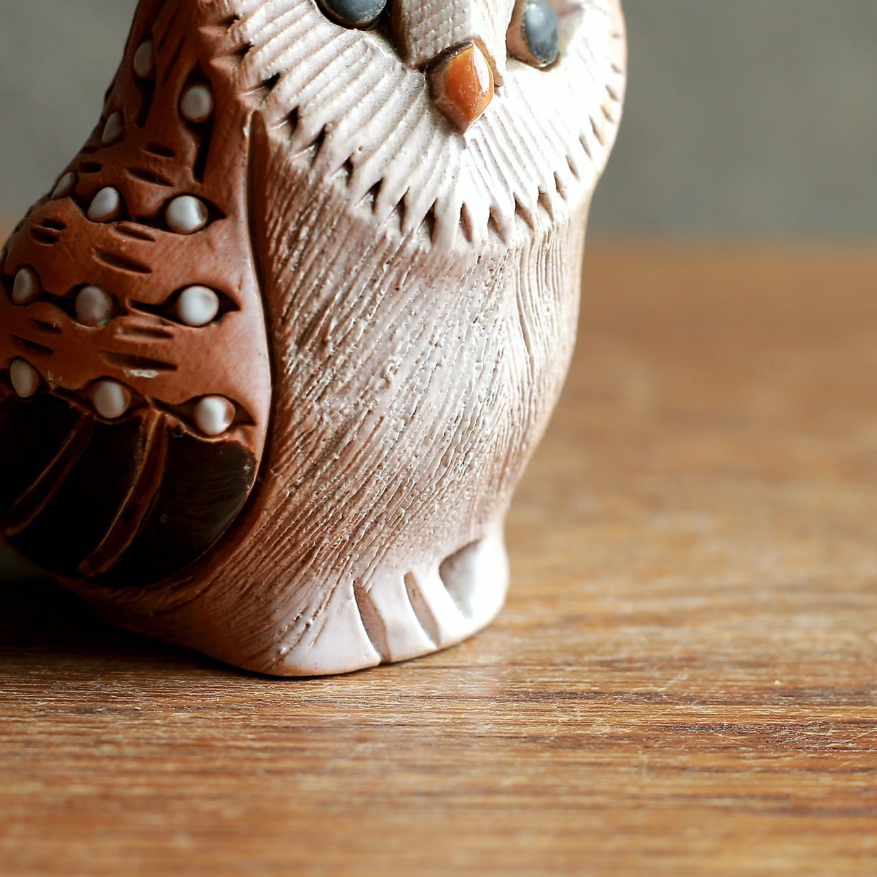 愛らしくこちらを見つめる、華やかなフクロウ(大)