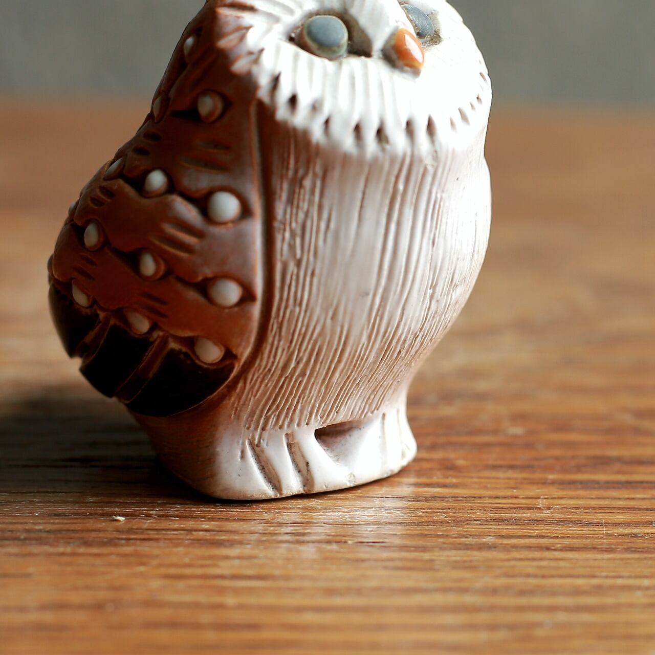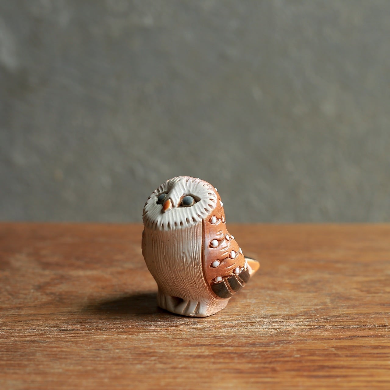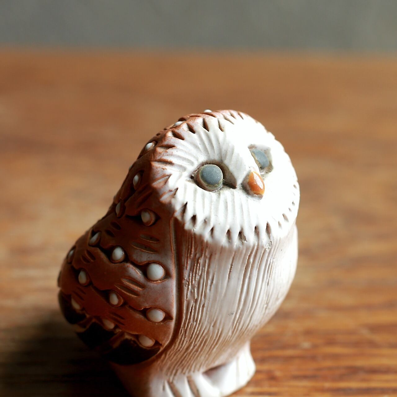 愛らしくこちらを見つめる、華やかなフクロウ(中)