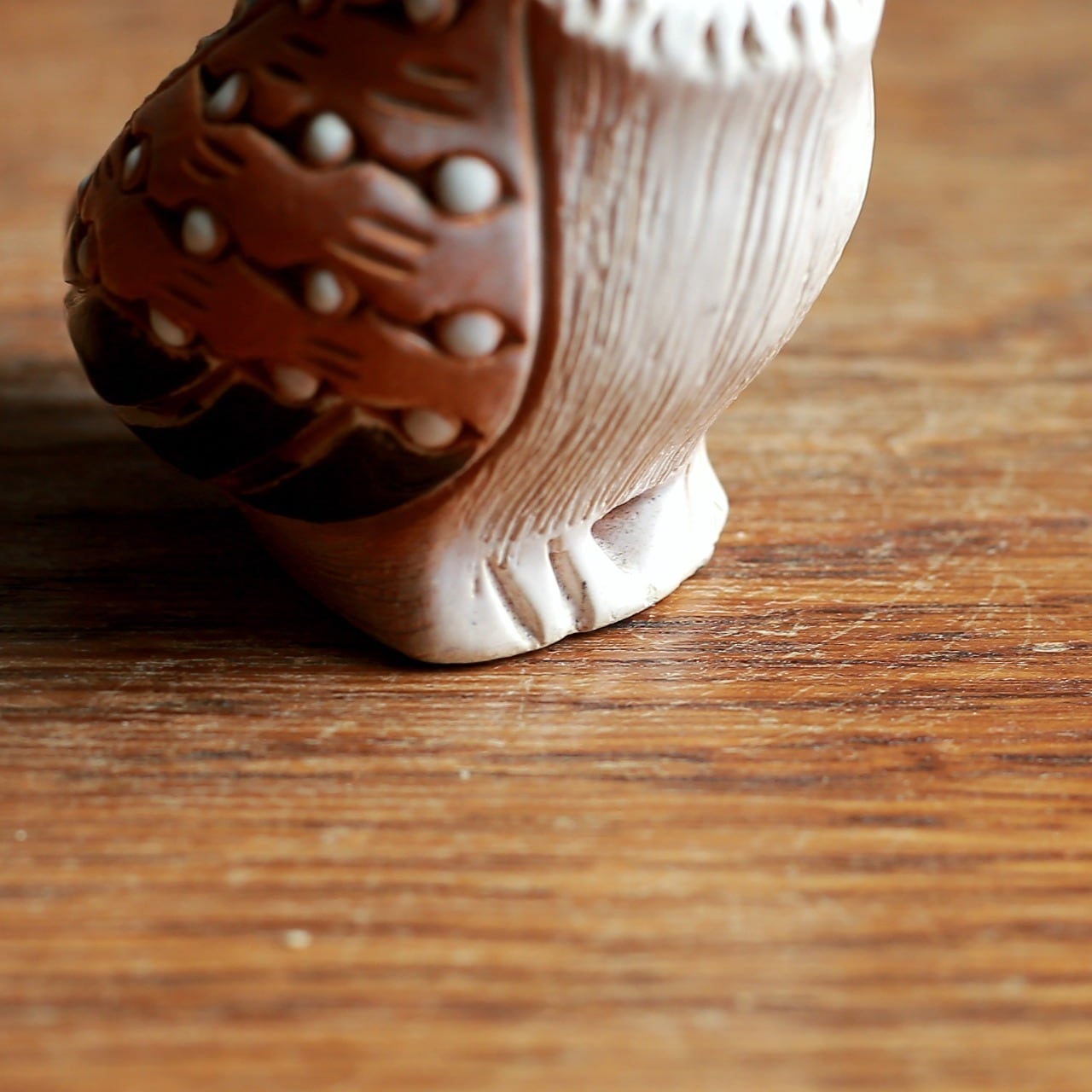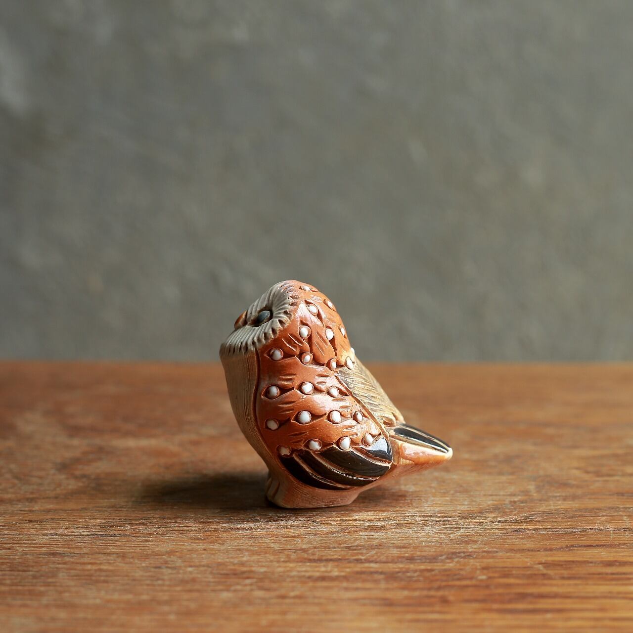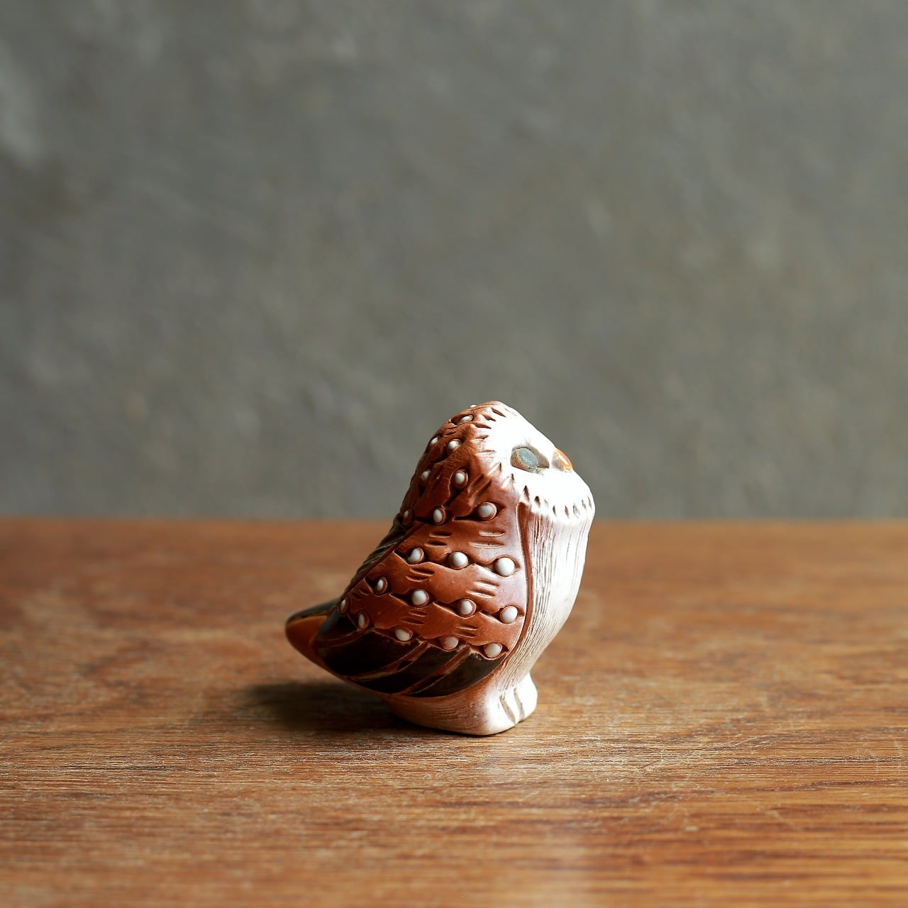 愛らしくこちらを見つめる、華やかなフクロウ(中)
