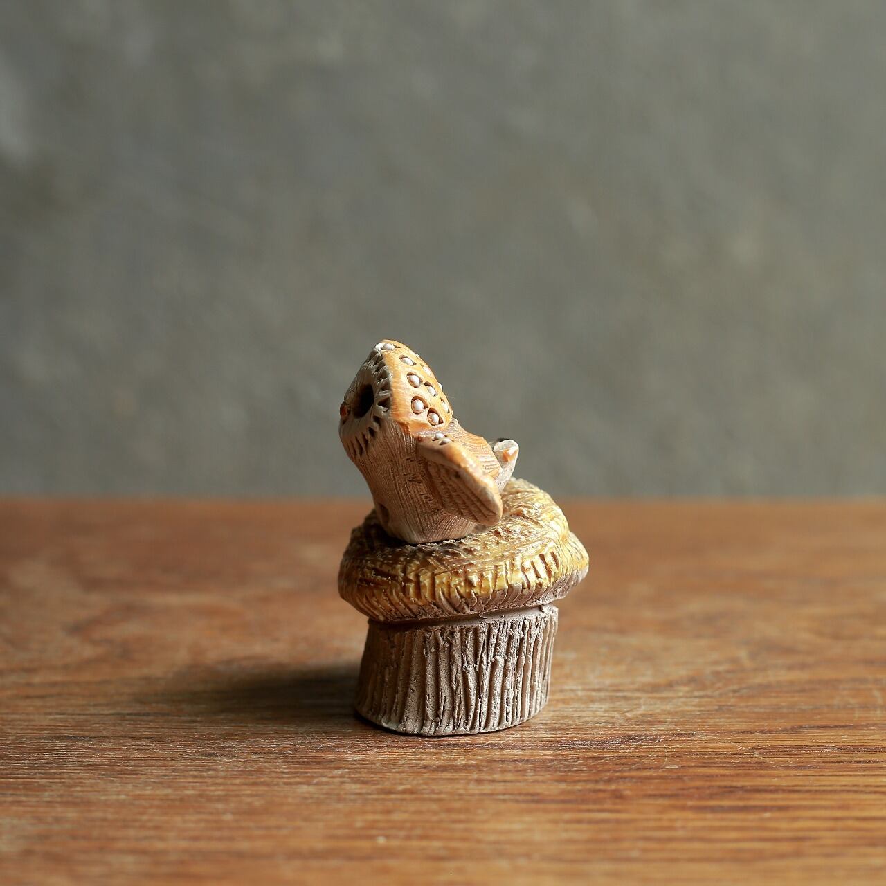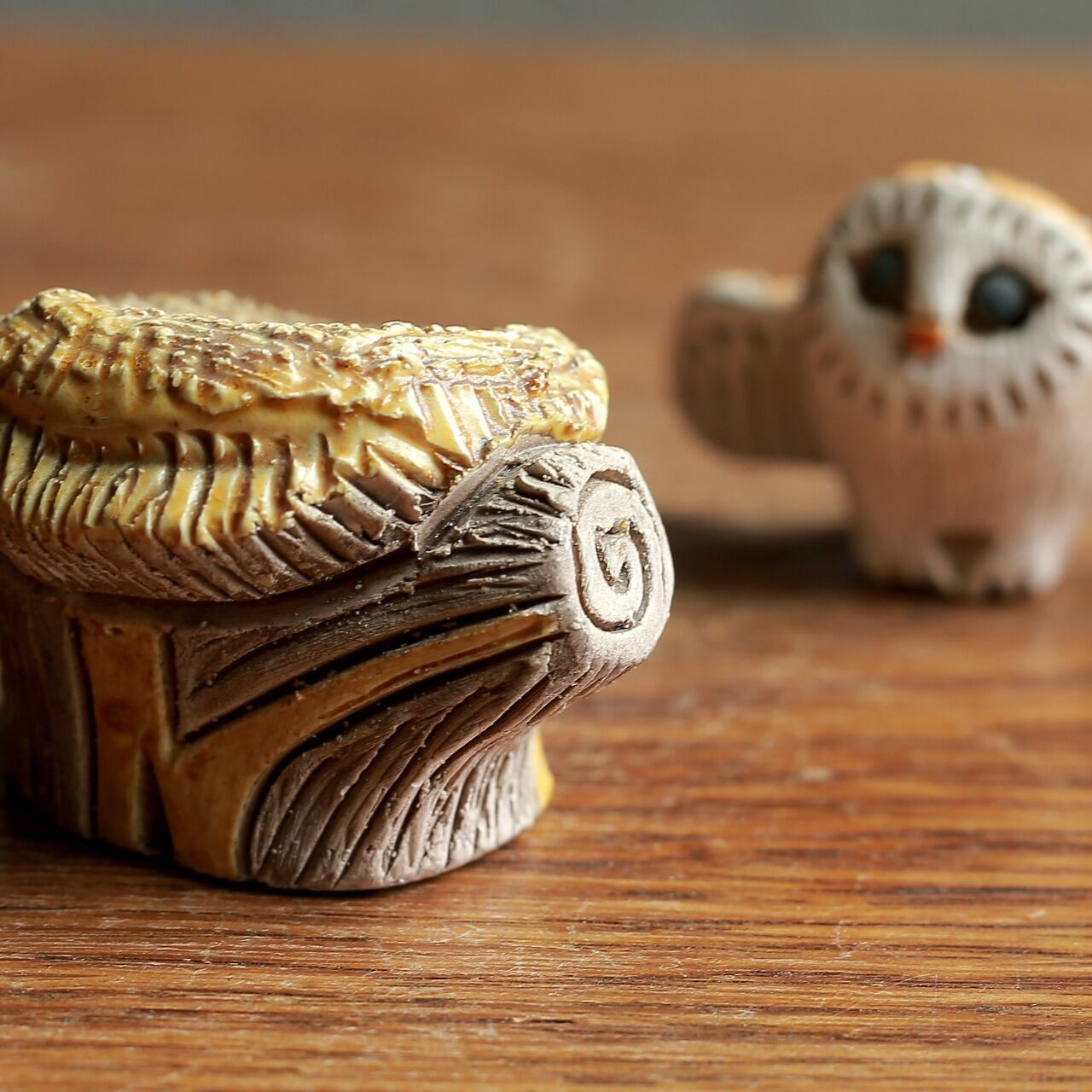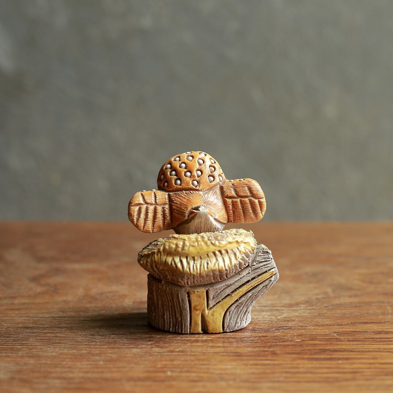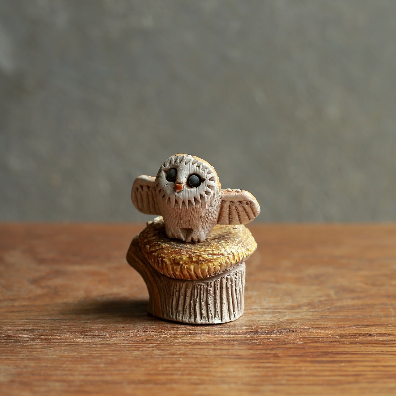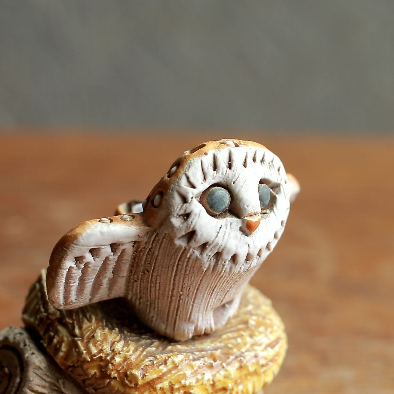 愛らしくこちらを見つめる、華やかなフクロウ(小)