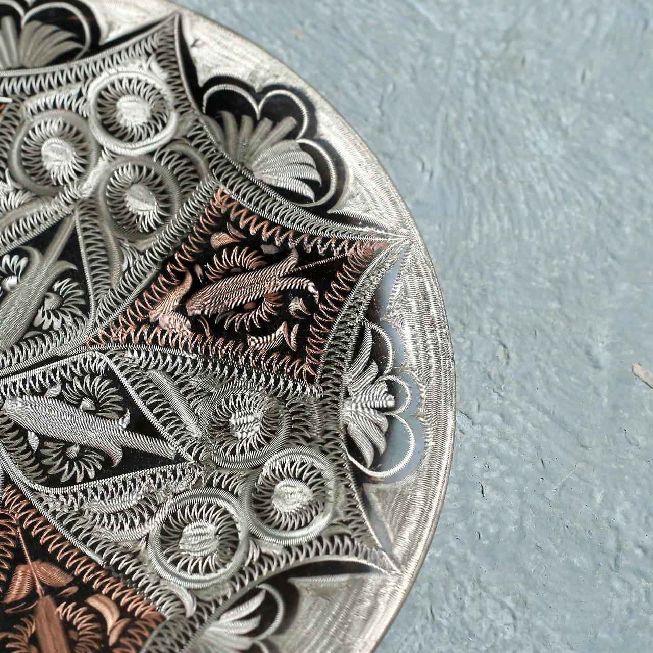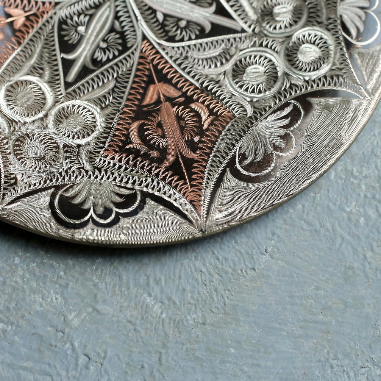 美しい模様の、銅のプレート。