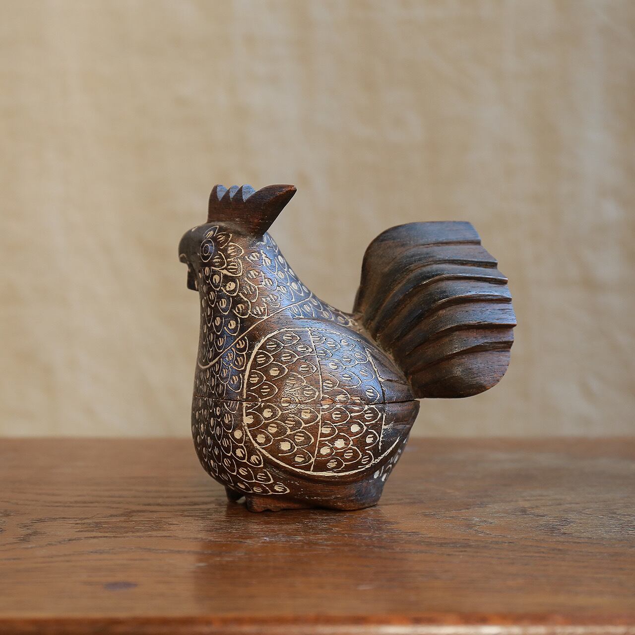 【ご成約品】ずっしりと揺るがない象 大、鳥が見守る、小物入れ、ひょうきんな鶏の容れ物