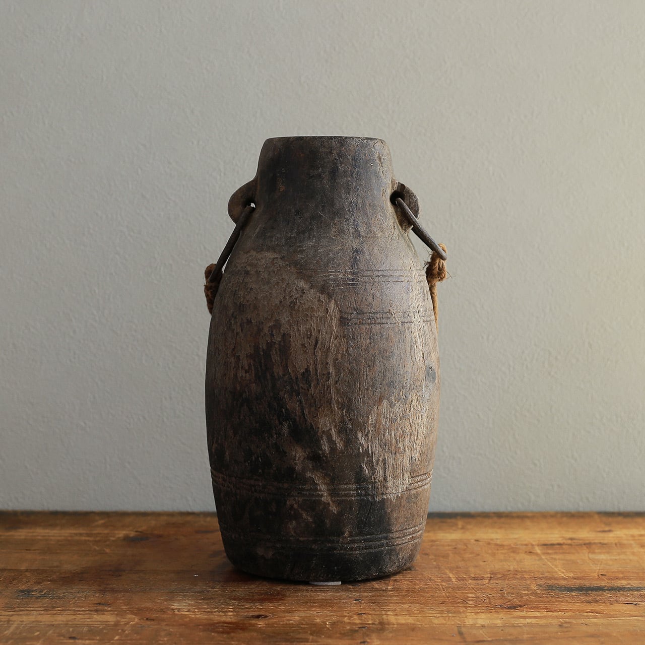 ▼ 木彫り 壺 フラワーベース 2 インド