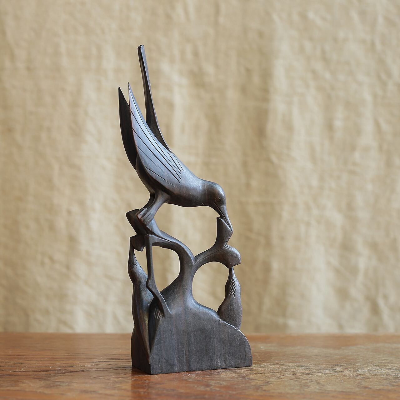 優美な姿をした、透かし木彫の鳥。