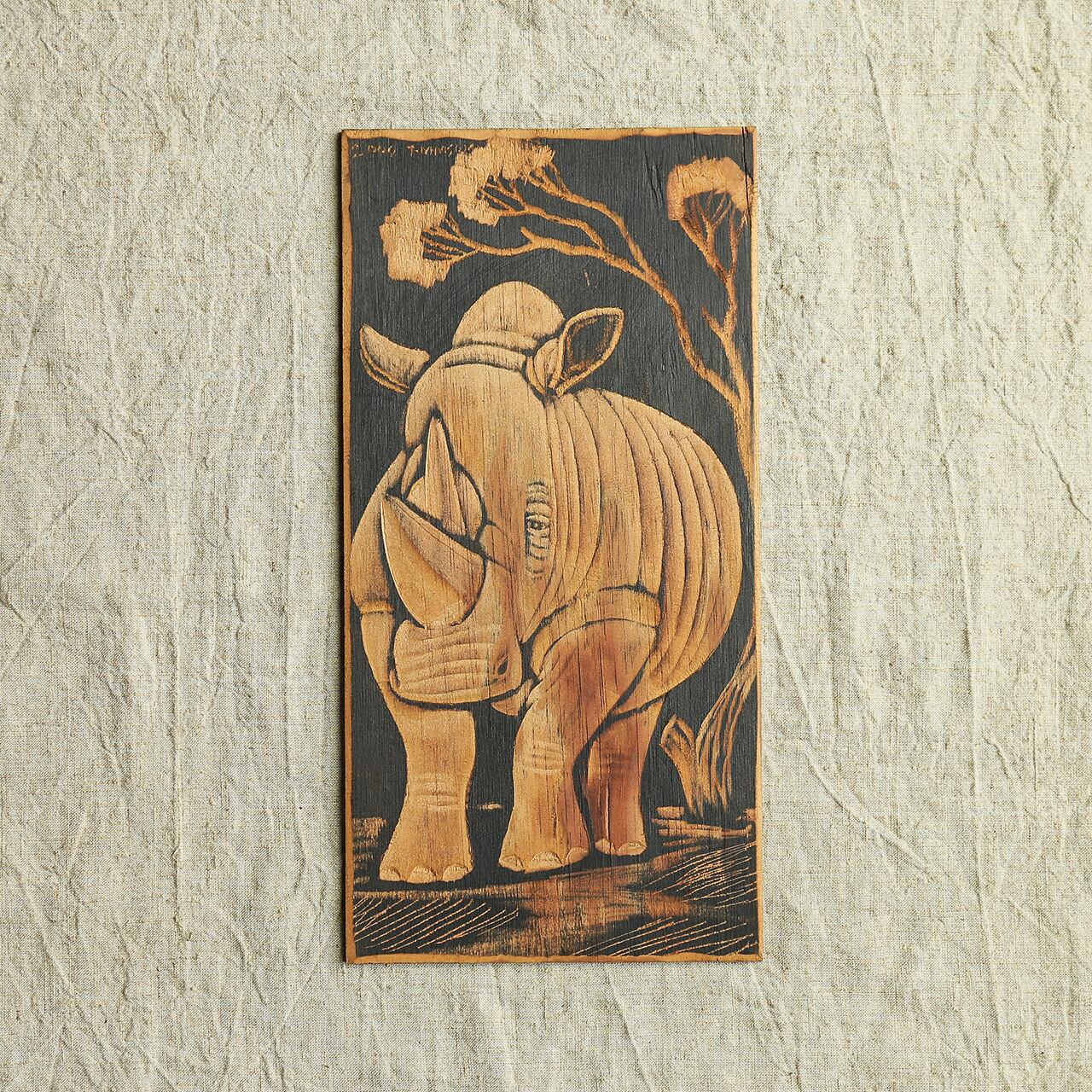 【ご成約品】サバンナの彫刻画 ライオン、ゾウ2、サイ