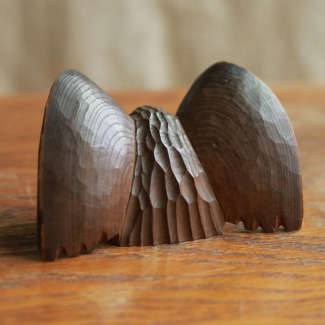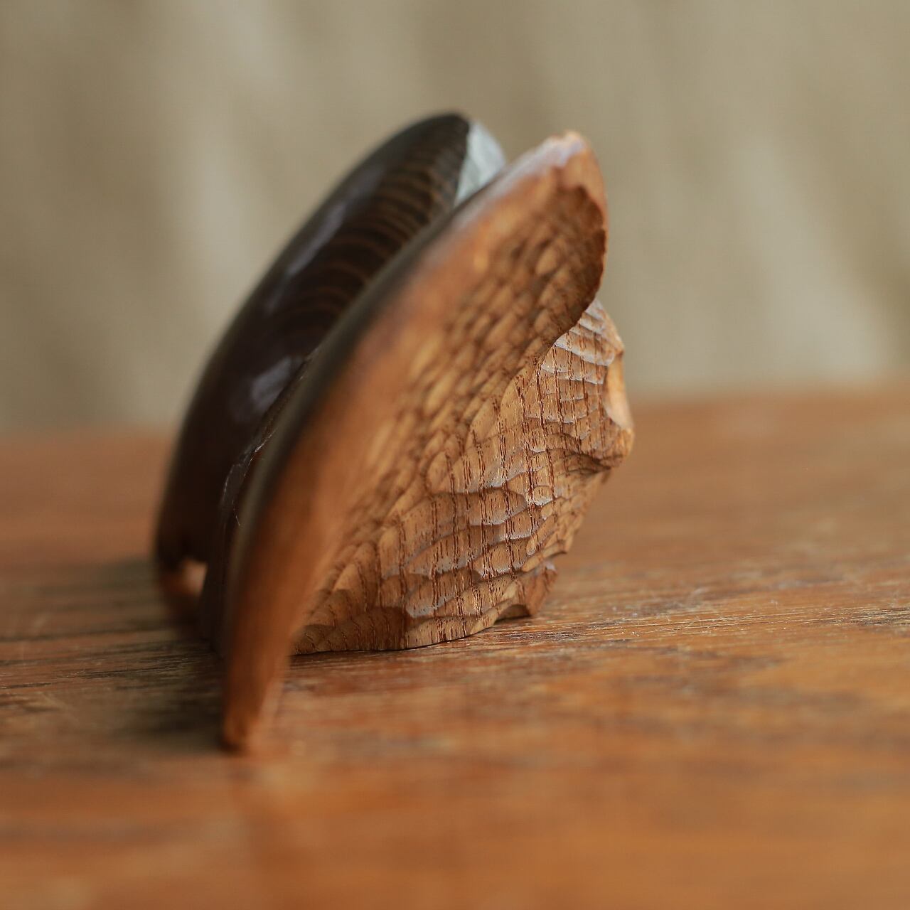一方で、羽根の模様もキレイに彫られていて