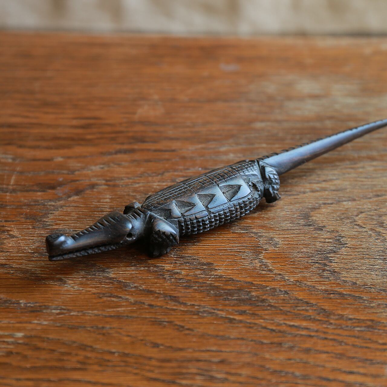 プリミティブな模様のワニ。