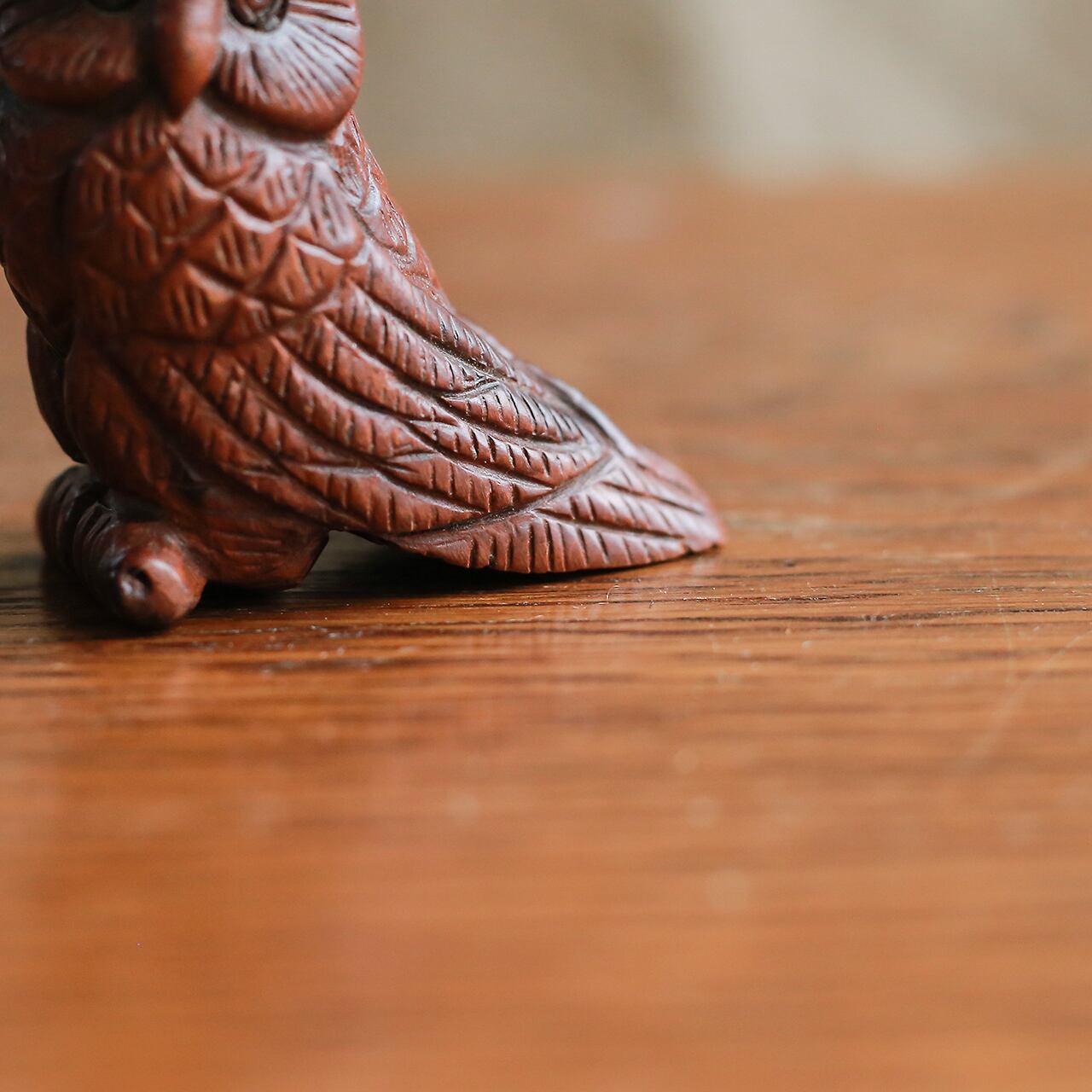 凛々しい、木彫の小さなフクロウ。