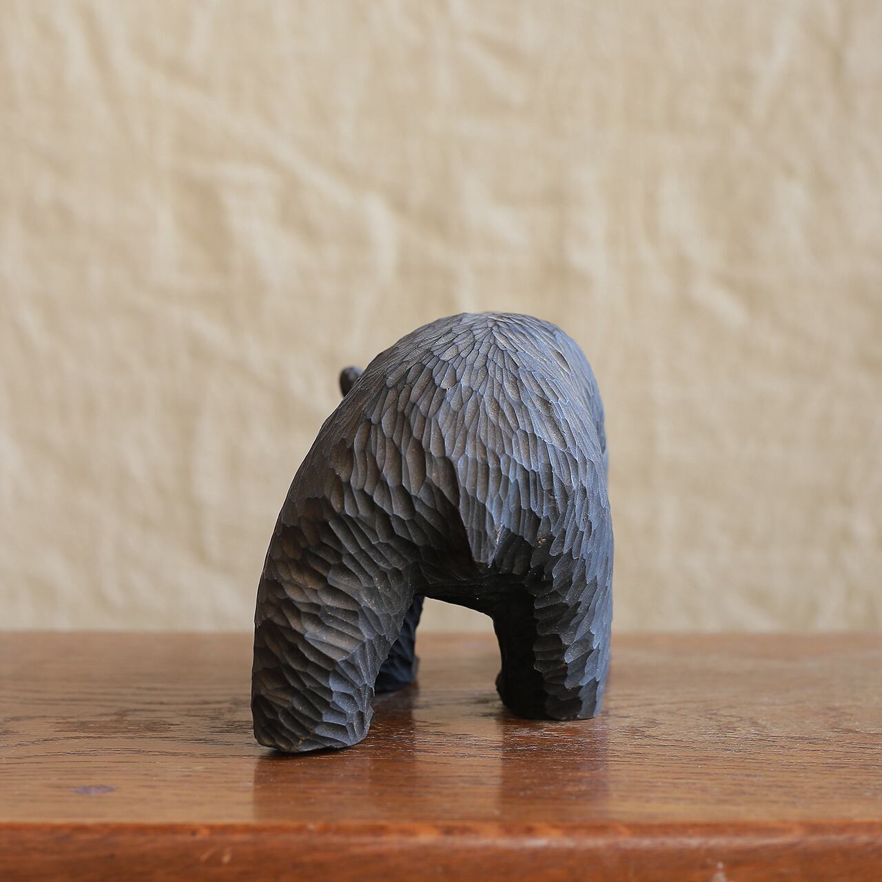 力強くたくましさ感じる木彫りのクマ。