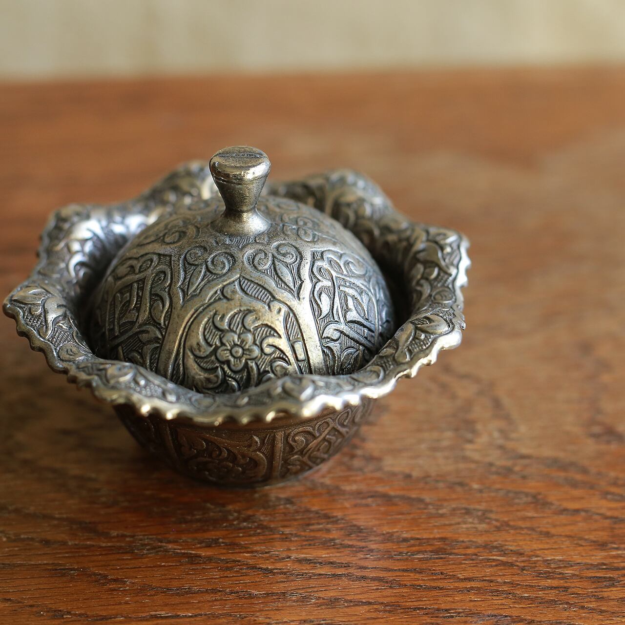 優雅なフォルムと彫りが美しい小物入れ