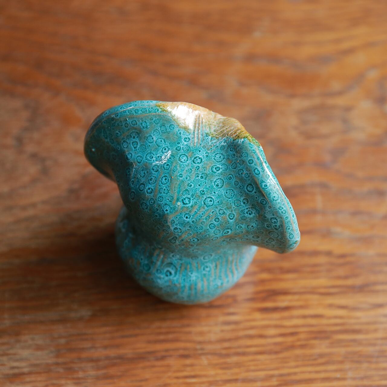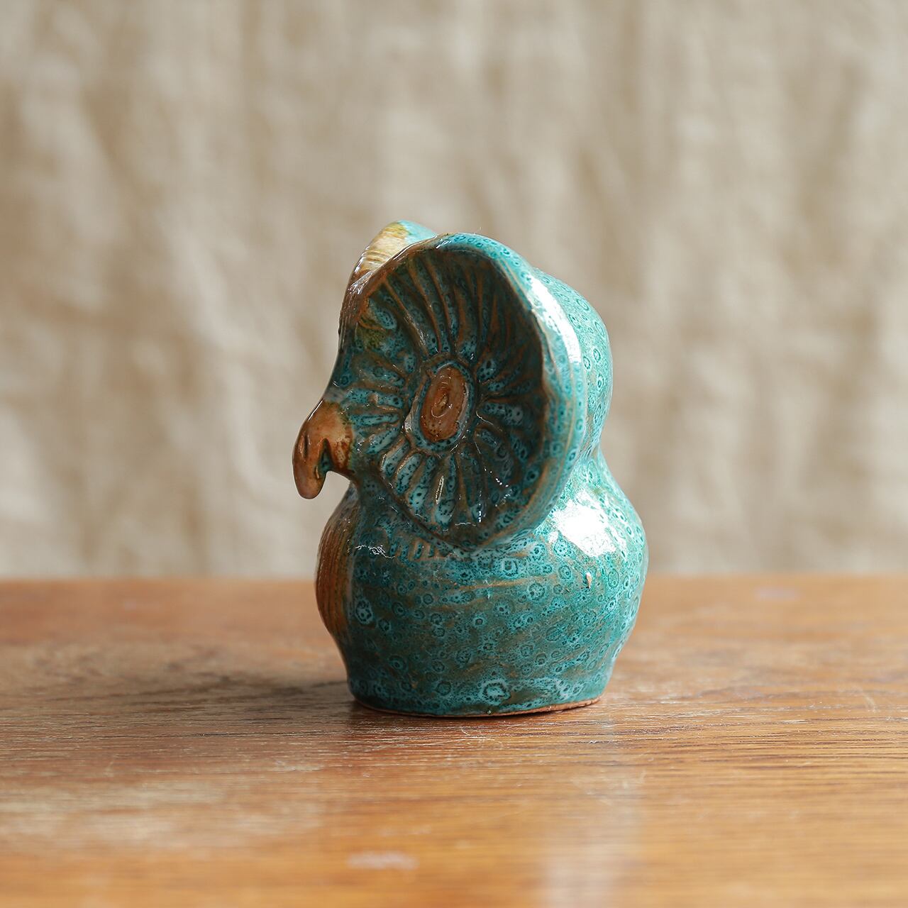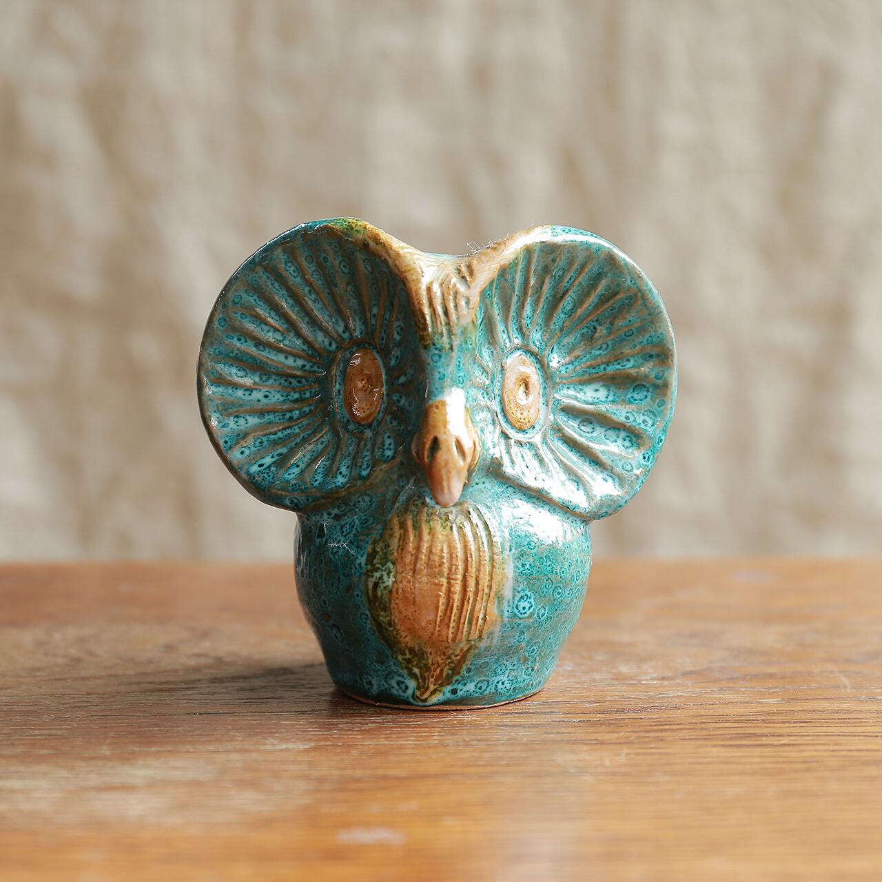 ぱっちり見つめる、陶器のフクロウ。