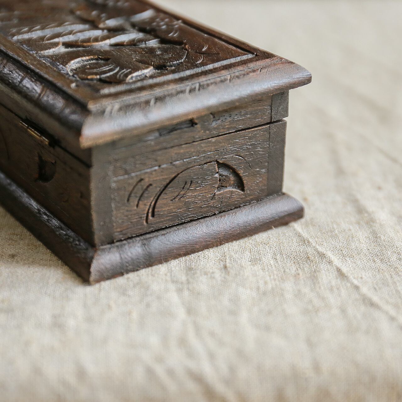 【ご成約品】美しい模様の木彫りの箱 7・インドからやってきた、小さな鳥の小物入れ・上品に泳ぐ、カモの小物入れ