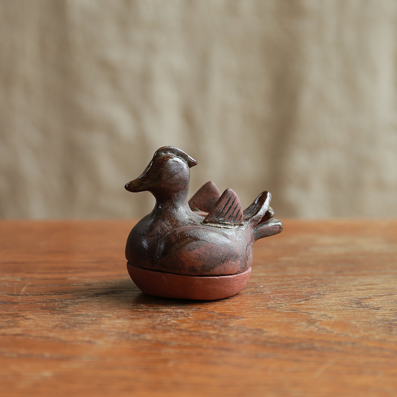 【ご成約品】陶器でできた、小さなカモの小物入れ