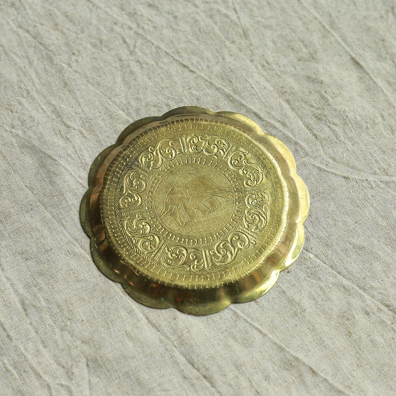 彫りが美しい、ゴールドに輝くトレイ
