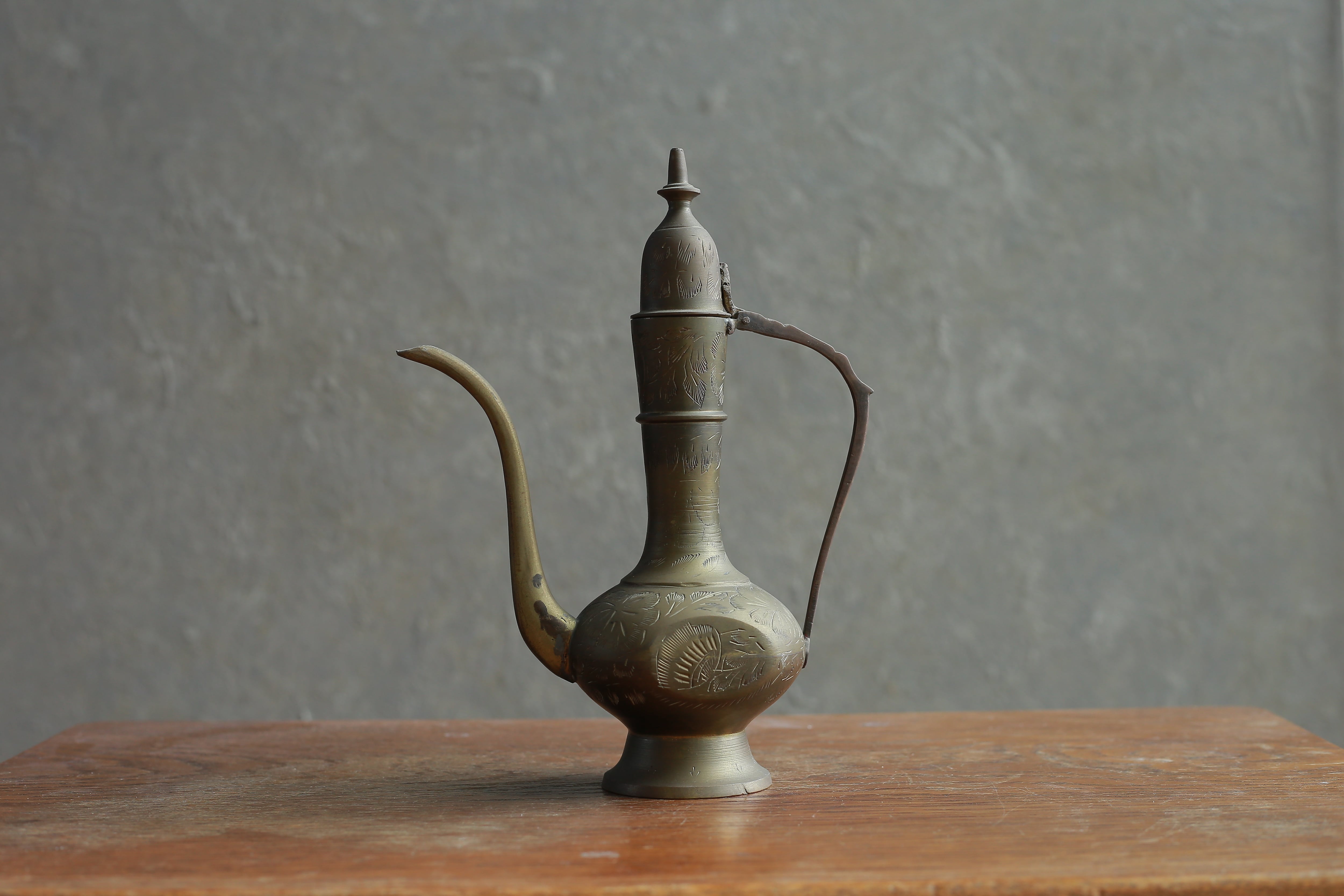 【ご成約品】鳥が見守る、真鍮のハンドベル 3・彫りが美しい、真鍮の水差し 2
