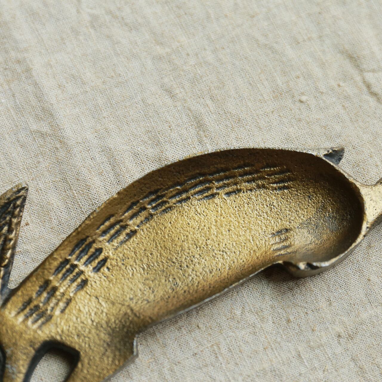 【ご成約品】ぴょんと跳ねる、ウサギのトレイ・彫りが美しい、ゴールドに輝くトレイ3