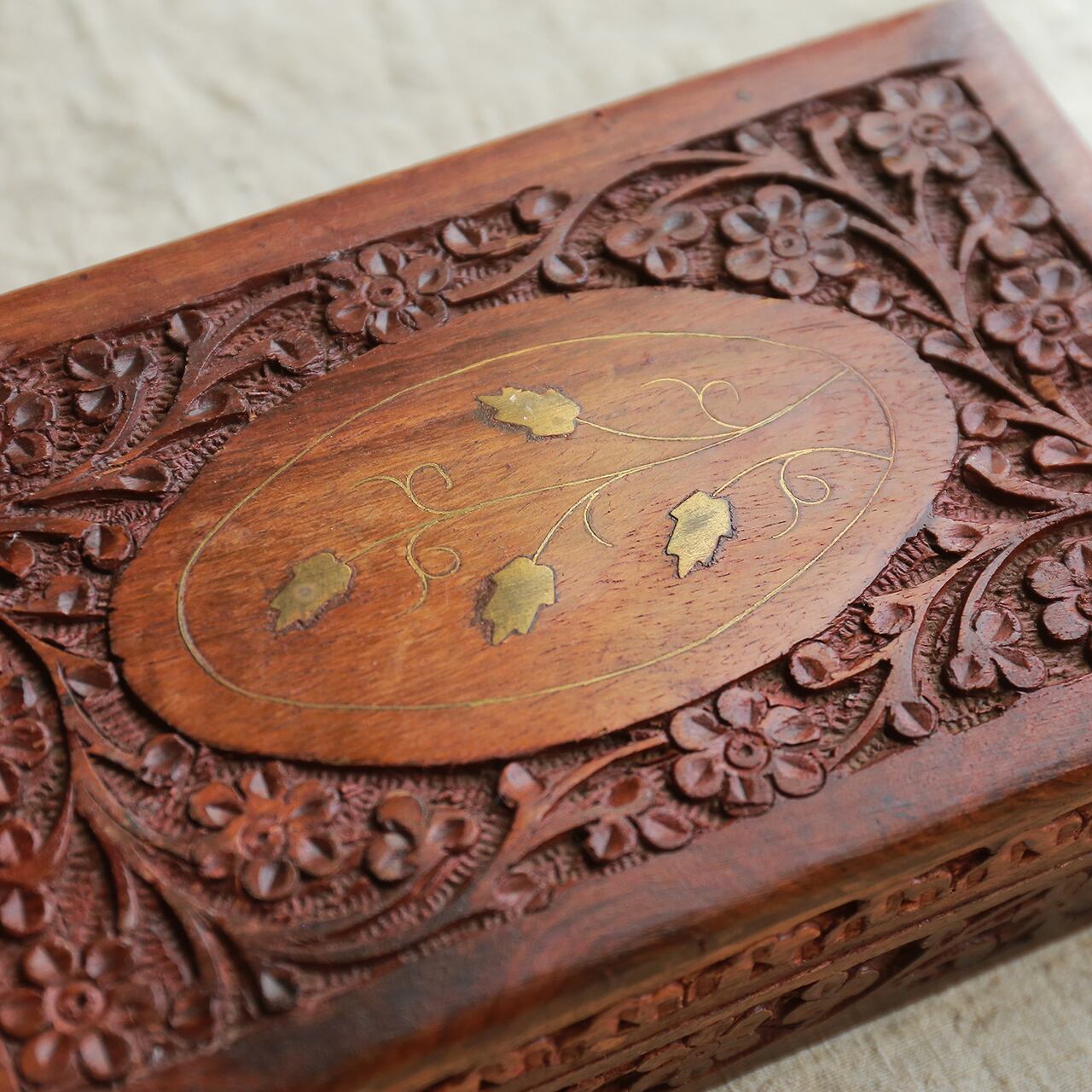 美しい模様の木彫りの箱 11