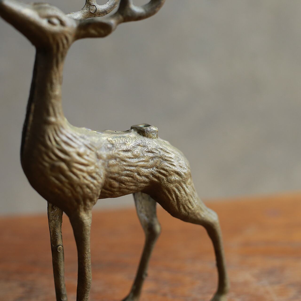 空を見上げる、真鍮のシカ。