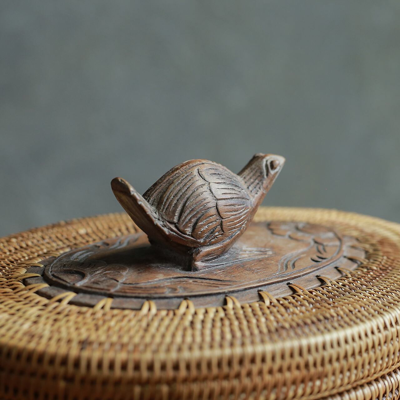 鳥が蓋の上で見守っている