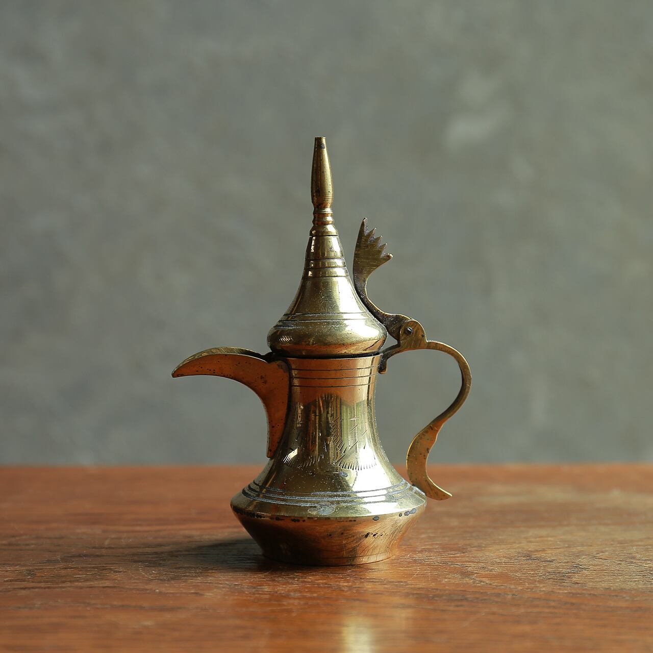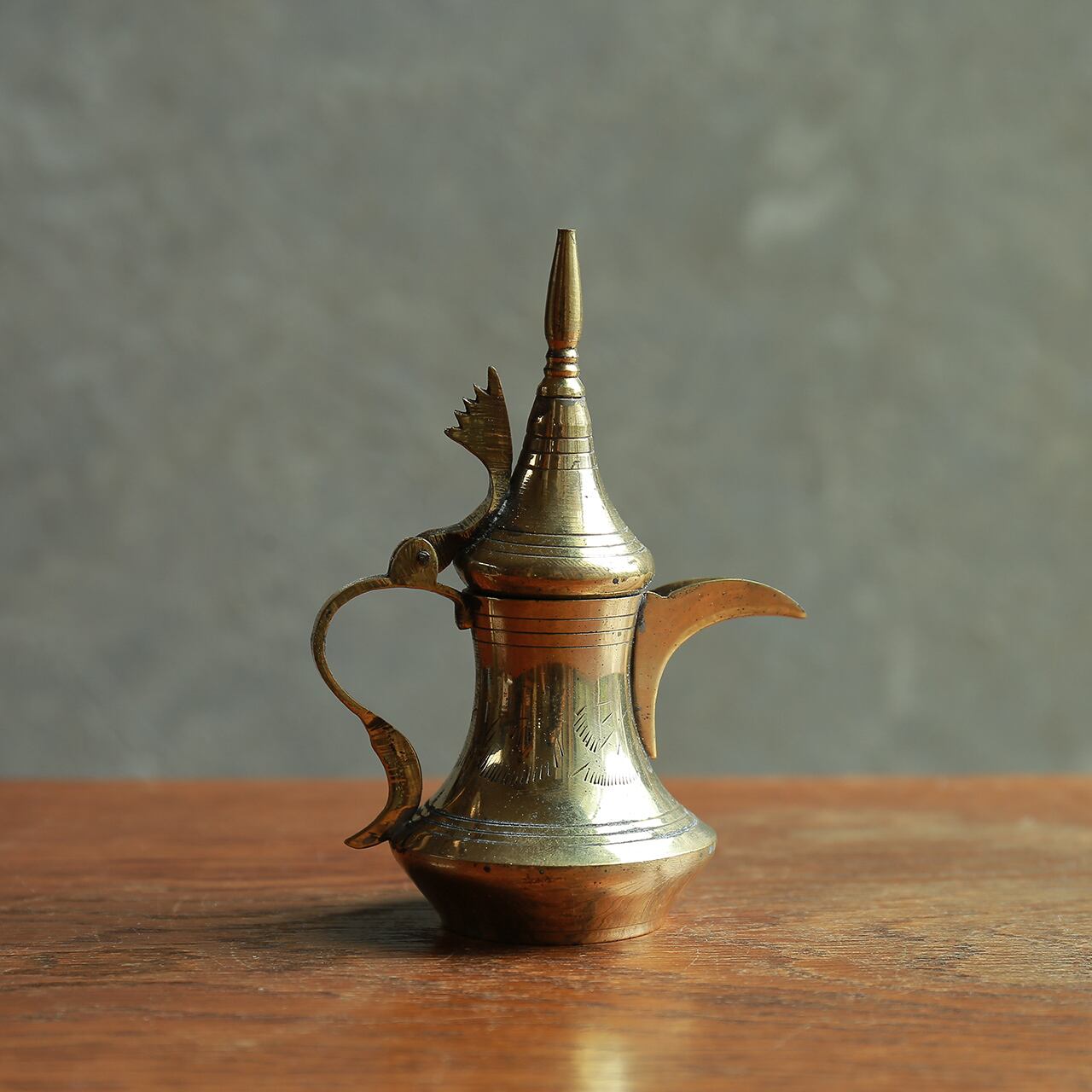【ご成約品】トルコから届いた、真鍮のピッチャー・経年変化が美しい、ピューターのジャグ・水牛の角で作られたフクロウ